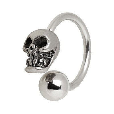 316L Surgical Steel Horseshoe with Skull.Implant Grade 316L Surgical Steel Horseshoe with Skull & Ball.Great for multi purpose piercing especially on lip.Mirror finished 316L Surgical Steel with precision threading.