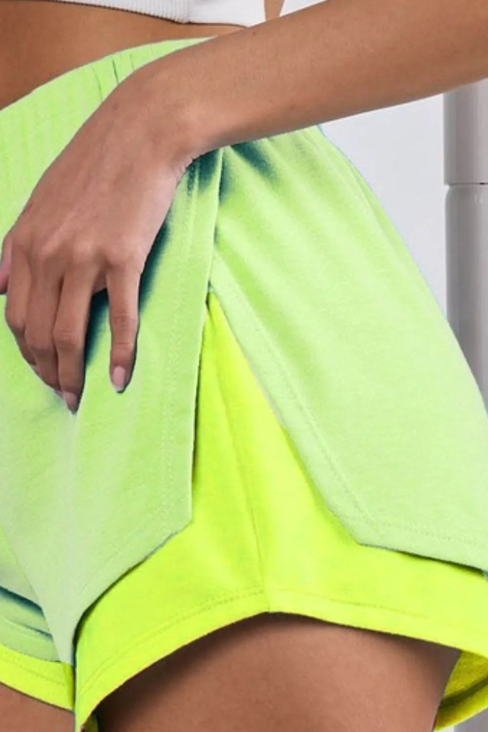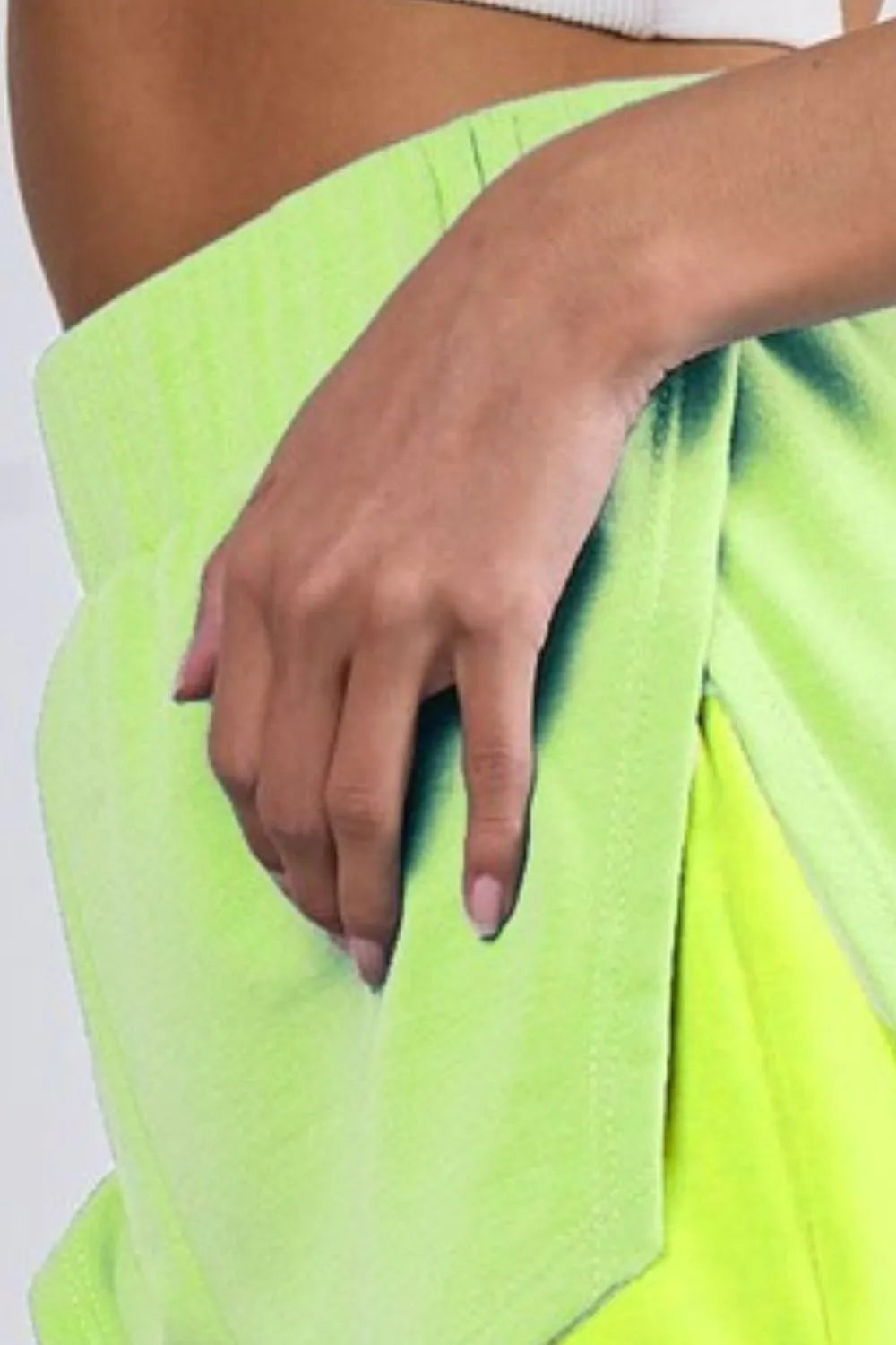 French terry knit color block shorts with side slits are a stylish and comfortable bottom option that combines the coziness of French terry fabric with a trendy color block design and modern side slits. The French terry knit construction provides a soft and stretchy feel, making these shorts ideal for lounging or casual wear. The color block detailing adds a fun and eye-catching element to the shorts, creating a visually interesting look. The side slits offer added breathability and movement, making these shorts practical and versatile for various activities. These shorts can be paired with a t-shirt or tank top for a relaxed and chic outfit. Overall, French terry knit color block shorts with side slits are a fashionable and functional choice that combines style and comfort for a laid-back yet trendy ensemble.
