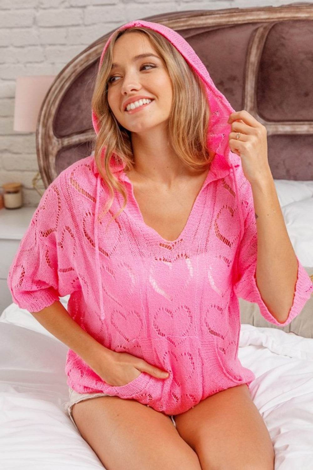 BiBi Openwork Heart Hooded Knit Top - DaTrendStore.Com BiBi Openwork Heart Hooded Knit Top - DaTrendStore.Com