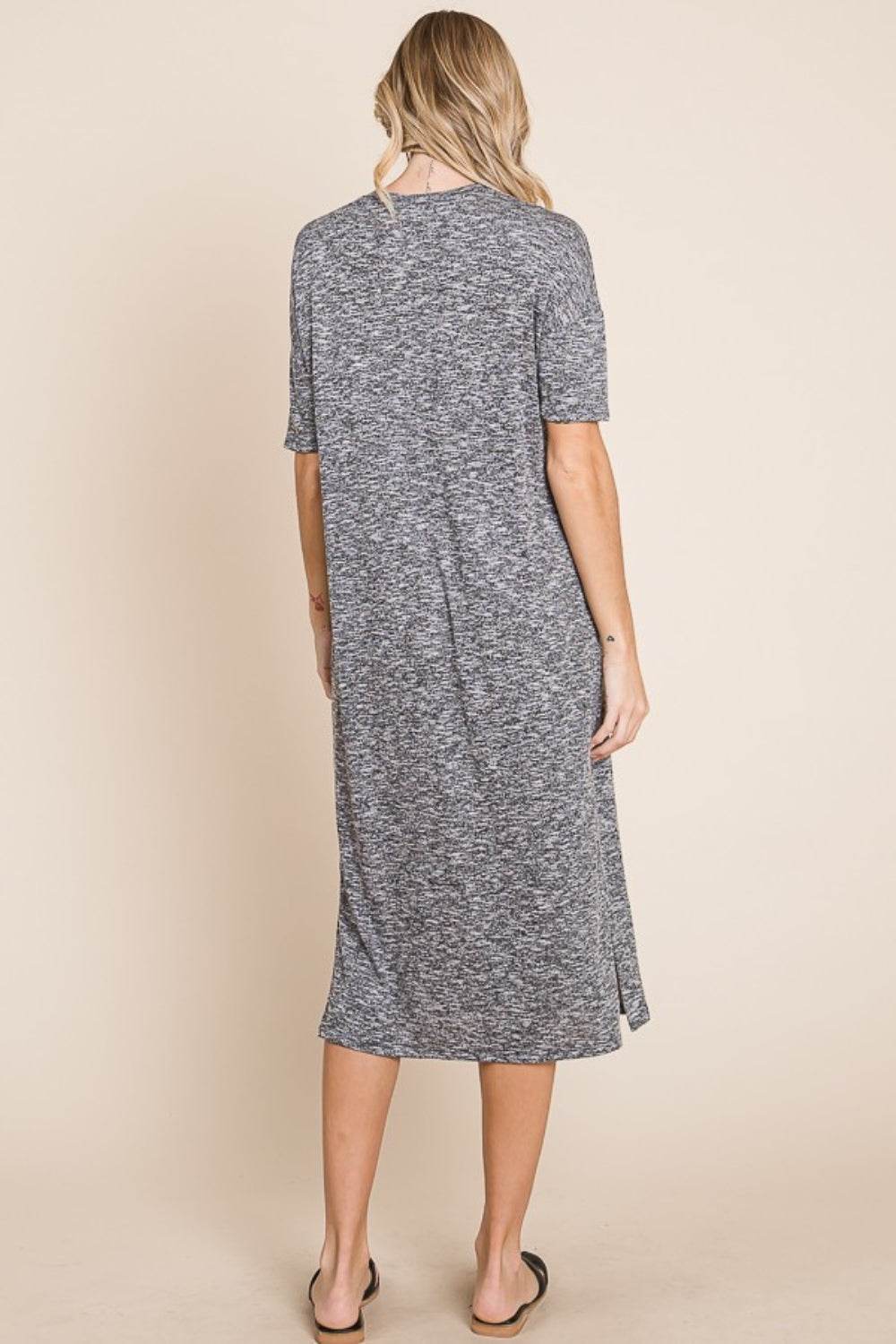 BOMBOM Slit Round Neck Half Sleeve Midi Dress - DaTrendStore.Com BOMBOM Slit Round Neck Half Sleeve Midi Dress - DaTrendStore.Com