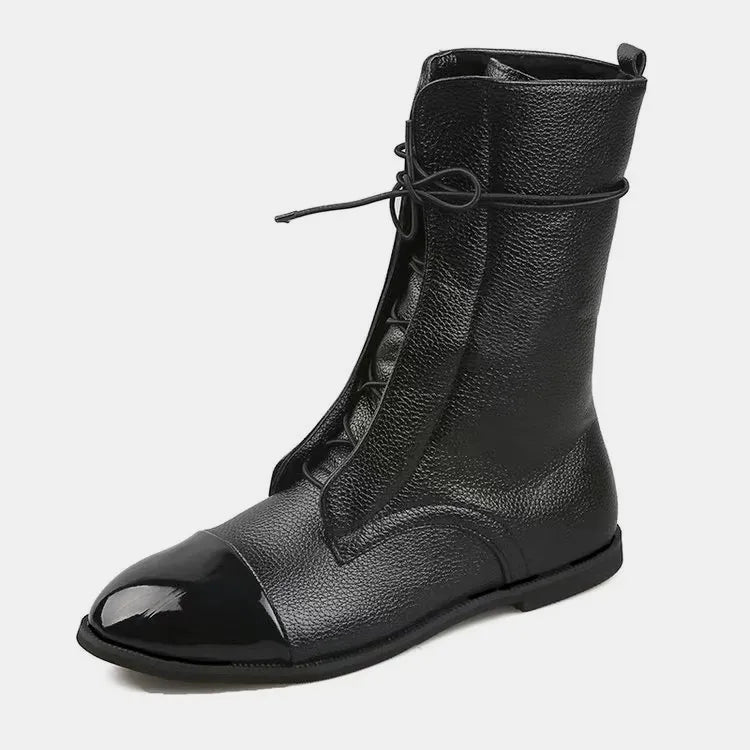 Contrast Lace Up Point Toe Boots