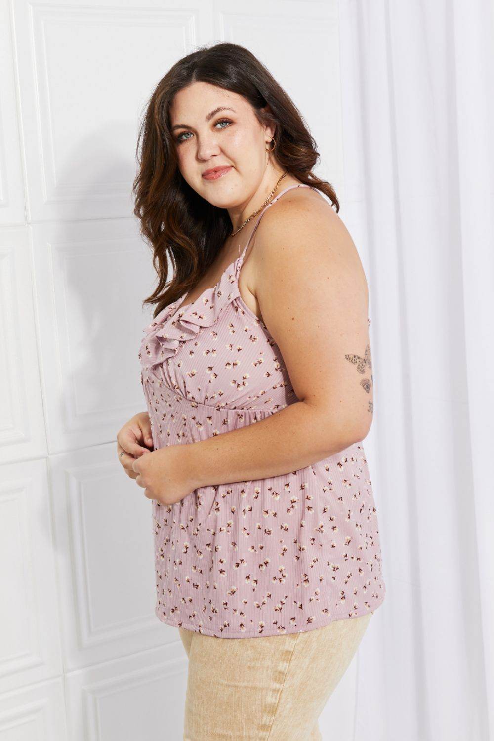 The floral print on this sleeveless top will give you a taste of spring all year long. Featuring a ruffle detail along the v-neckline, this top is as flattering and feminine as it gets. For a summer fit, wear with a pair of cutoffs and sandals. On colder days, add a duster cardigan for warmth, and swap out shorts with jeans.