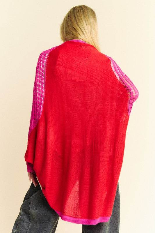 Davi & Dani Openwork Contrast Open Front Cardigan - DaTrendStore.Com Davi & Dani Openwork Contrast Open Front Cardigan - DaTrendStore.Com