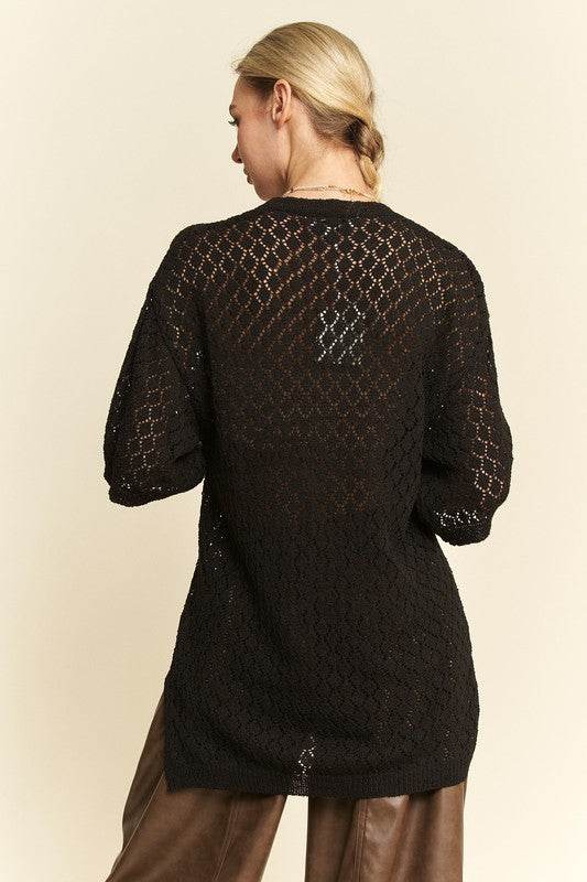 Davi & Dani Side Slit Openwork Round Neck Half Sleeve Knit Cover Up - DaTrendStore.Com Davi & Dani Side Slit Openwork Round Neck Half Sleeve Knit Cover Up - DaTrendStore.Com