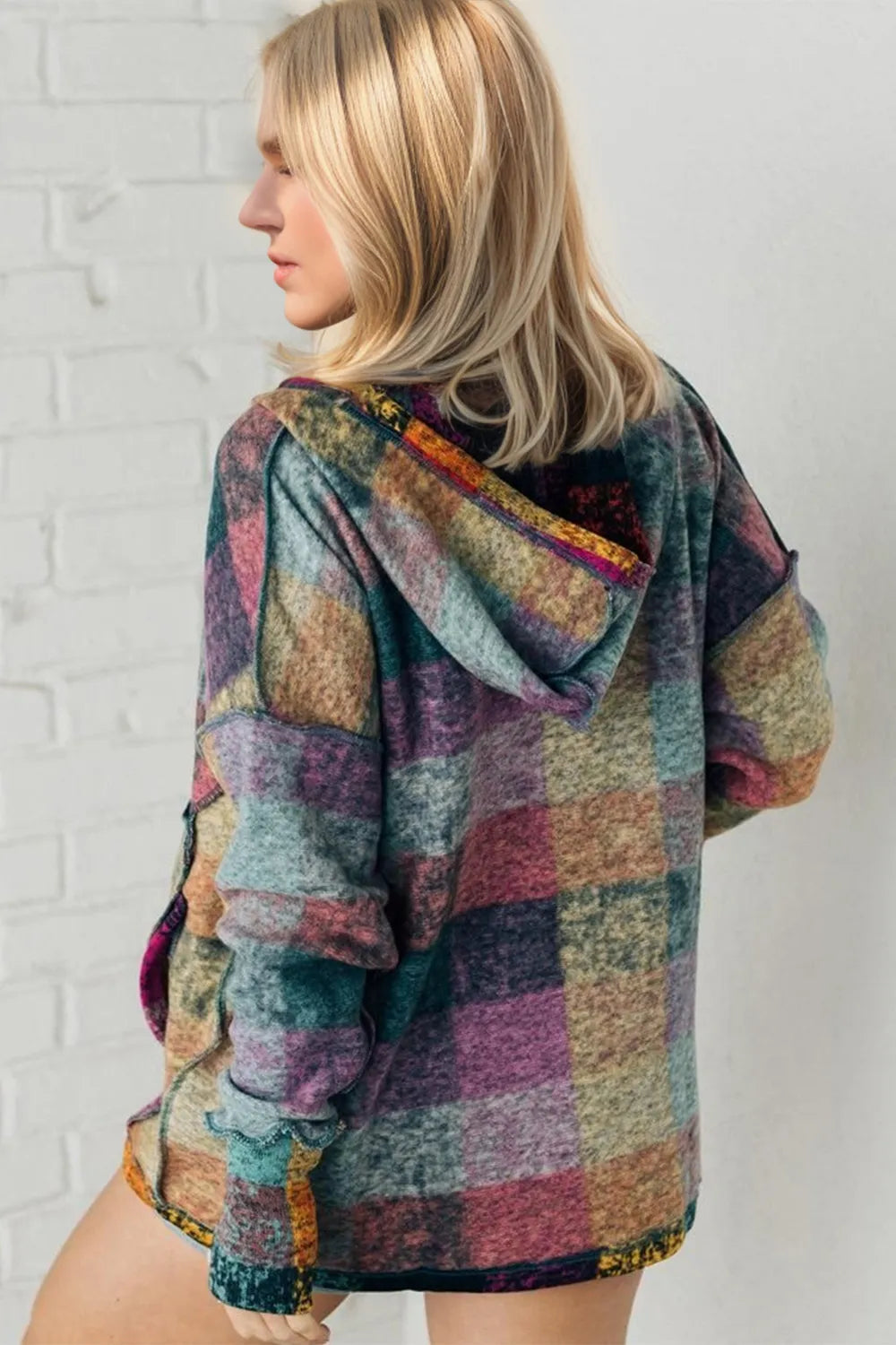 • Double Take Full Size Half Button Thumbhole Long Sleeve Fleece Hoodie Double Take Full Size Half Button Thumbhole Long Sleeve Fleece Hoodie