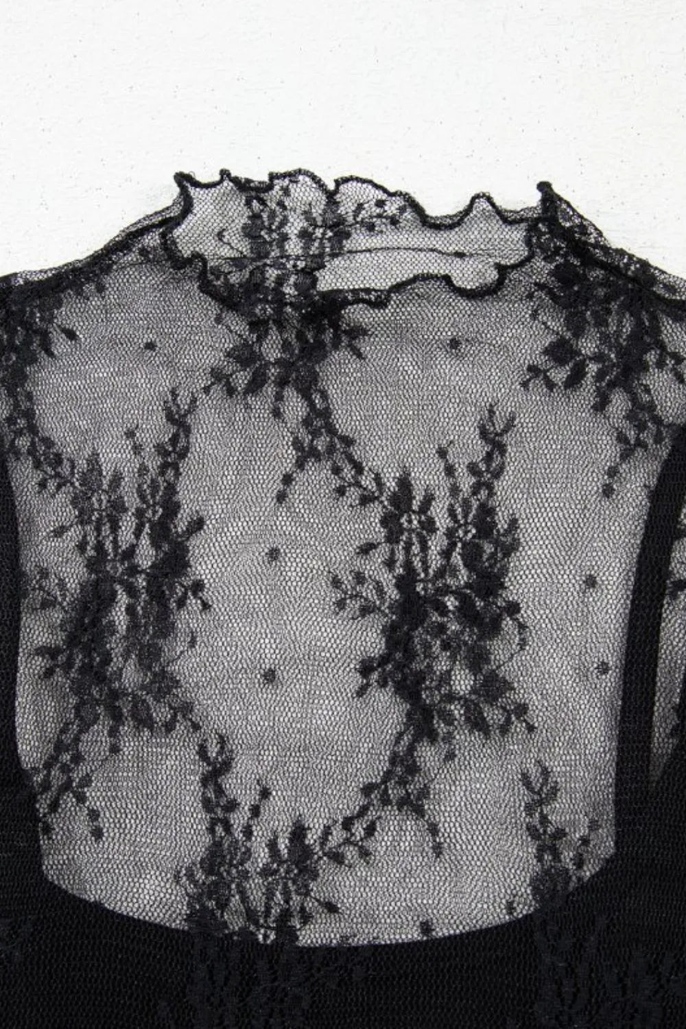 Floral Sheer Mesh Short Sleeve Top and Cami Set