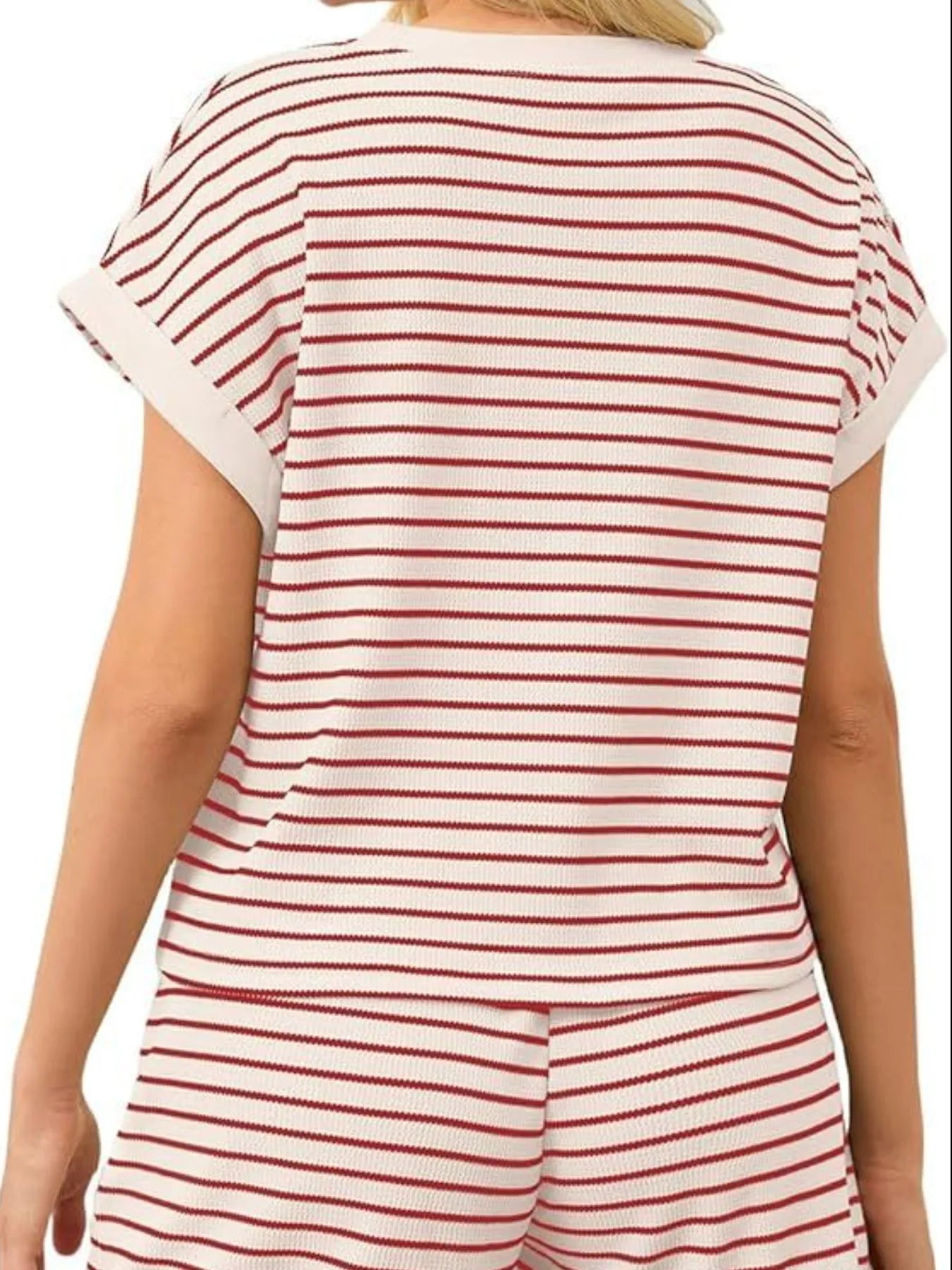 • Full Size Contrast Striped T-Shirt and Shorts Set Plus Size Full Size Contrast Striped T-Shirt and Shorts Set Plus Size