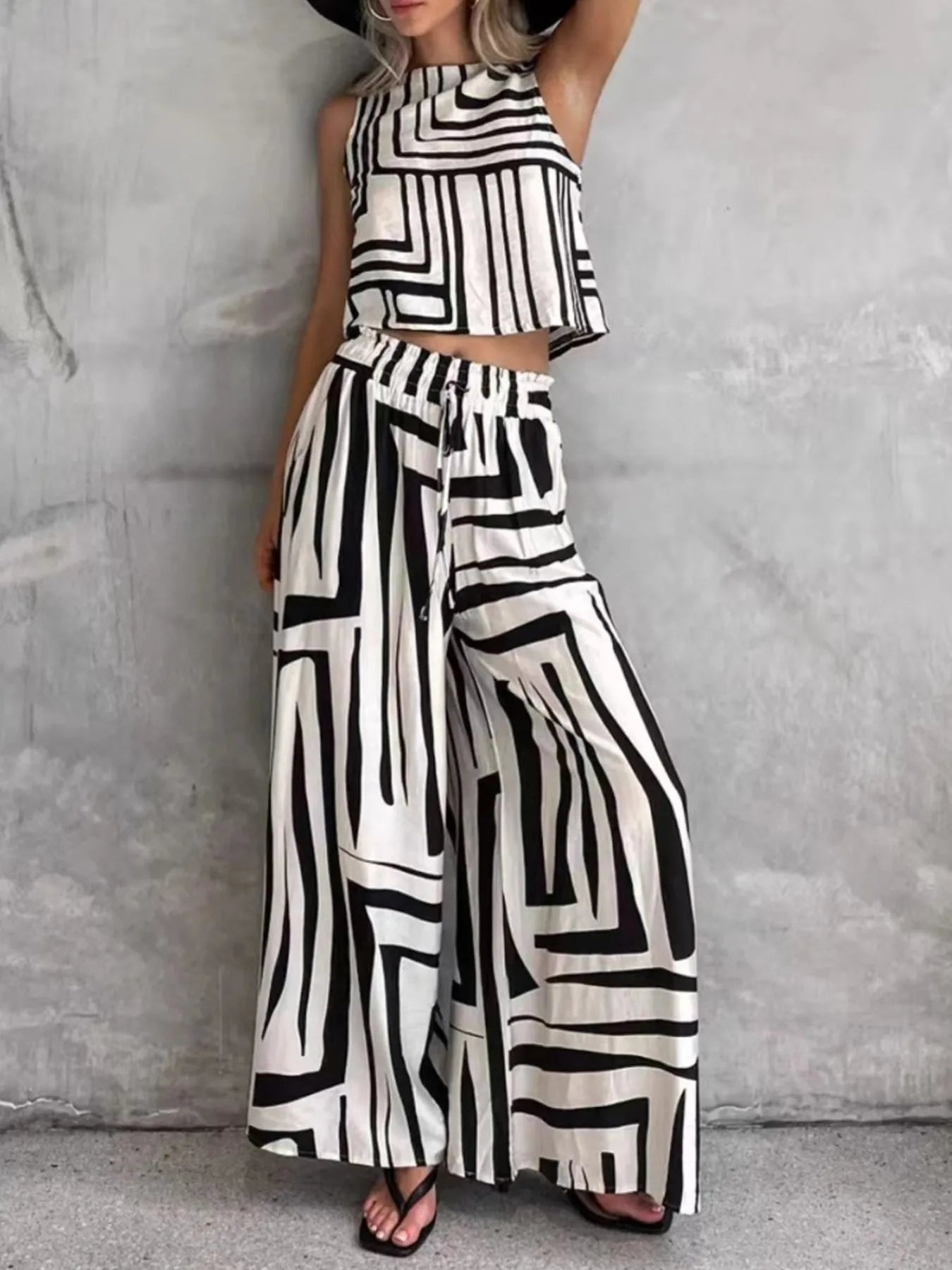 • Geometric Print Sleeveless Top and Wide Leg Pants Set Geometric Print Sleeveless Top and Wide Leg Pants Set