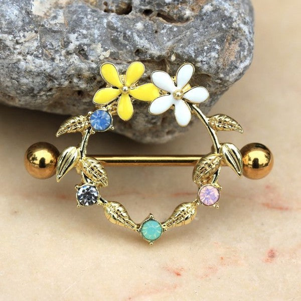 Nipple Shield / Nipple Ring with a Flower Field Design