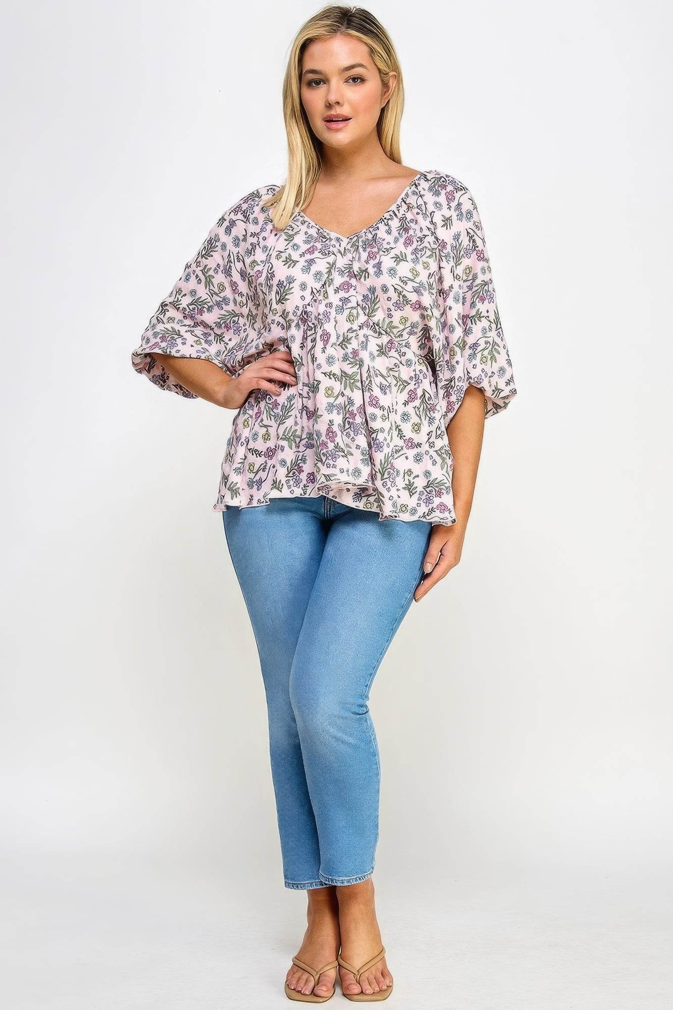 Add a touch of romance to your wardrobe with our Floral V-Neck Babydoll Balloon Sleeve Top in enchanting Fairy Pink. Shop now and elevate your style with ease!
