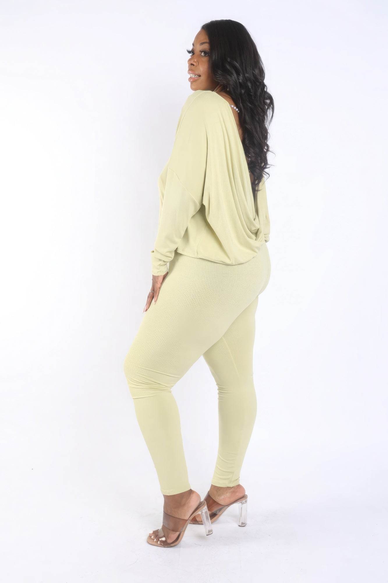 The combination of a sexy open back, strap-pointed design, long sleeves, and tight pants sets this ensemble apart. The high-quality Rayon-Spandex blend ensures a comfortable and stylish experience.