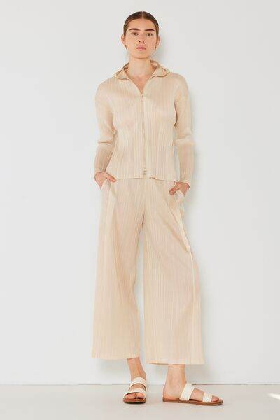 The Pleated Hood Jacket with 2-Way Zipper is a versatile and stylish outerwear piece that combines fashion and function. Featuring pleated details and a hood, this jacket offers a modern and trendy look. The 2-way zipper provides convenience and allows for different styling options. Perfect for layering over casual or athletic outfits, this jacket adds a touch of sophistication to your ensemble. Whether you're running errands or heading to the gym, this jacket is the perfect blend of comfort and style. Elevate your outerwear collection with the chic and practical Pleated Hood Jacket with 2-Way Zipper for a fashion-forward and versatile outerwear option.
