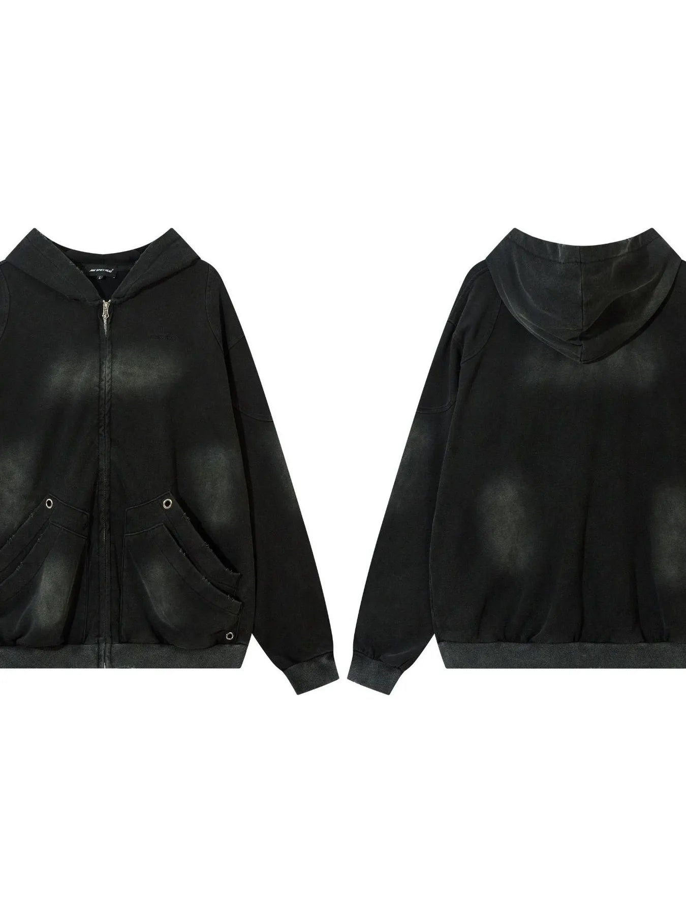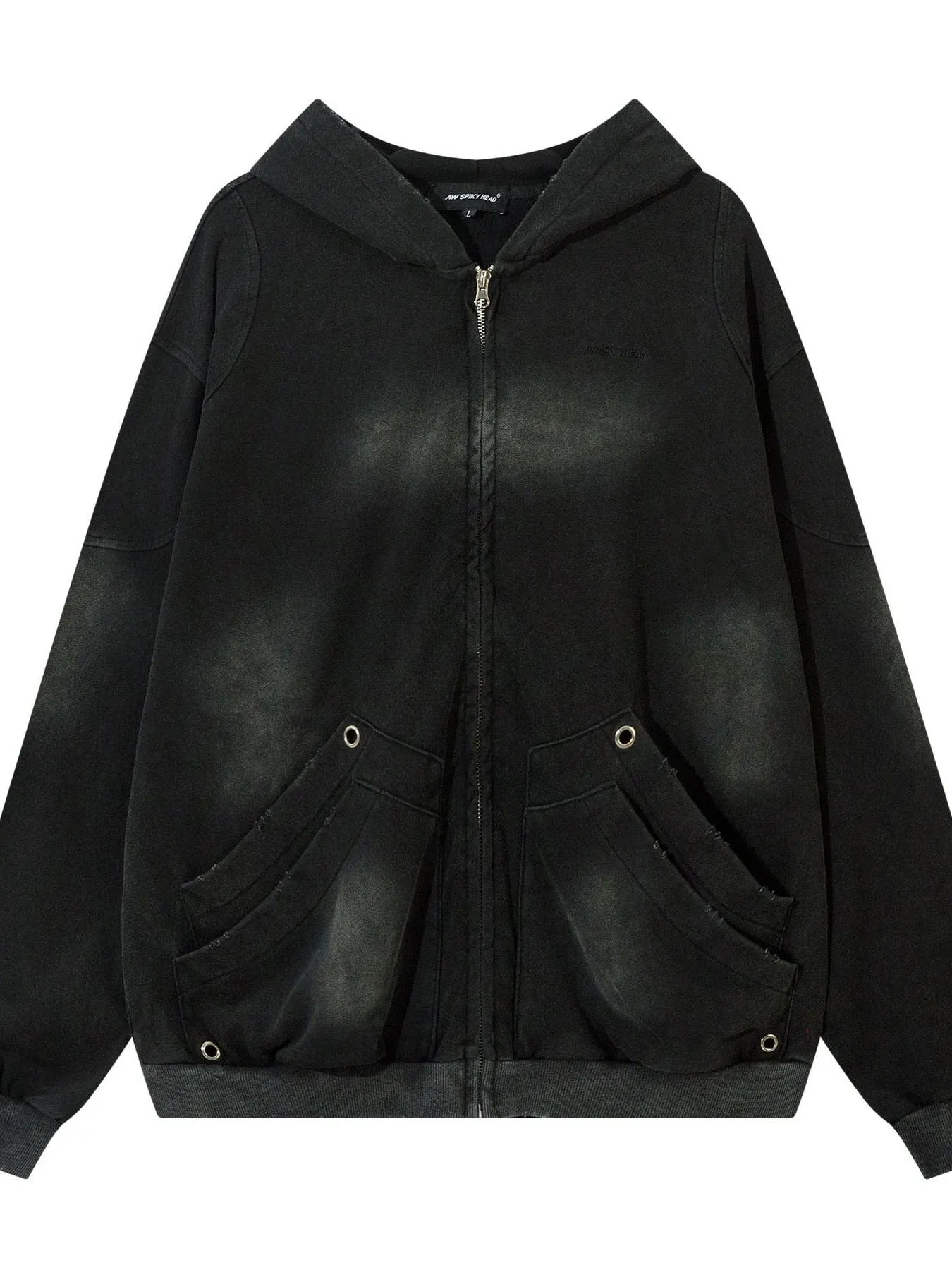 • Men's Washed Zip-Up Oversized Hoodie Men's Washed Zip-Up Oversized Hoodie