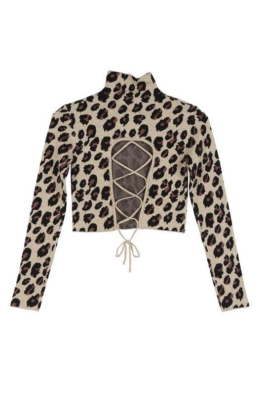 - Mock neck lace-up open back top, open back with