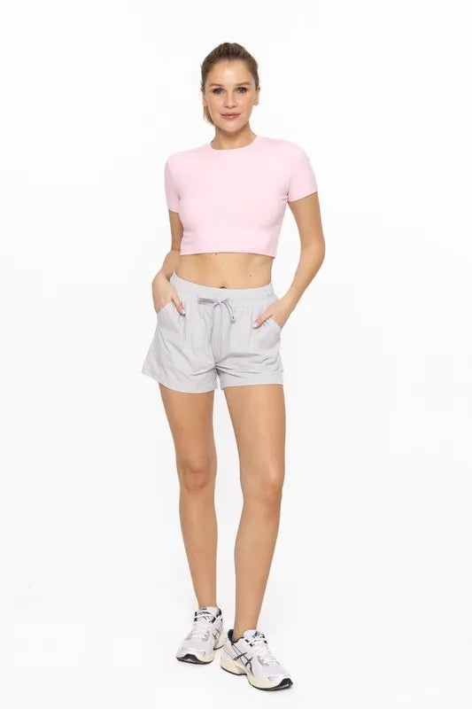 • MONO B Essential Micro-ribbed Cropped Athleisure Tee MONO B Essential Micro-ribbed Cropped Athleisure Tee