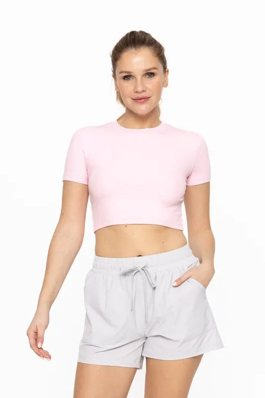 MONO B Essential Micro-ribbed Cropped Athleisure Tee