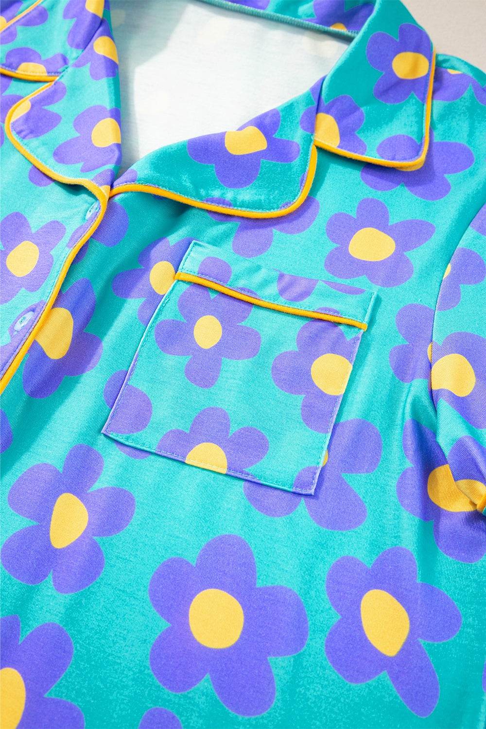 • Pocketed Flower Half Sleeve Top and Shorts Lounge Set Pocketed Flower Half Sleeve Top and Shorts Lounge Set