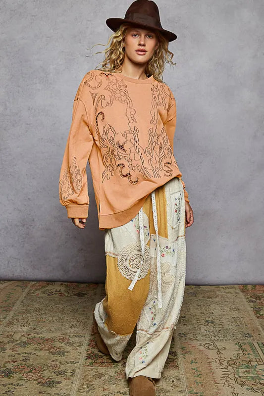 • POL Round Neck French Terry Sweatshirt with Cutout Detail POL Round Neck French Terry Sweatshirt with Cutout Detail