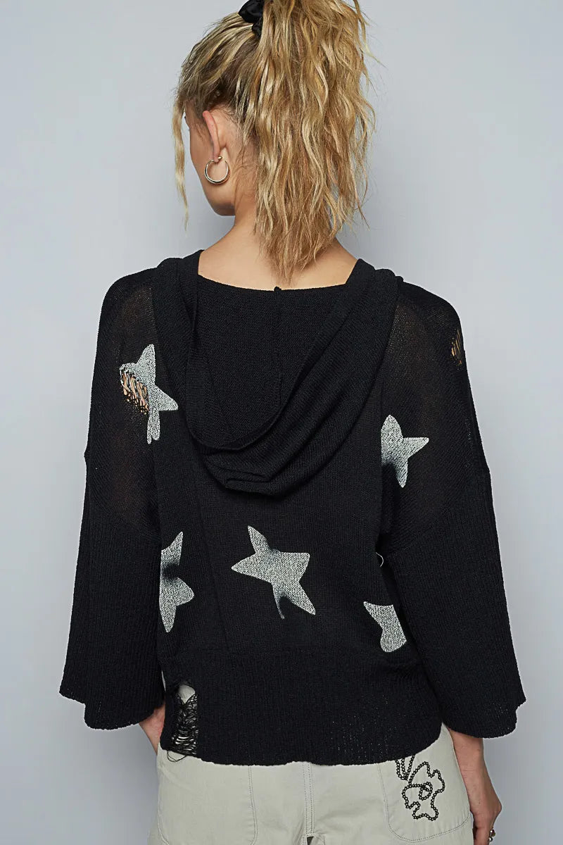 • POL Star Lace-Up Distressed Hooded Sweater POL Star Lace-Up Distressed Hooded Sweater