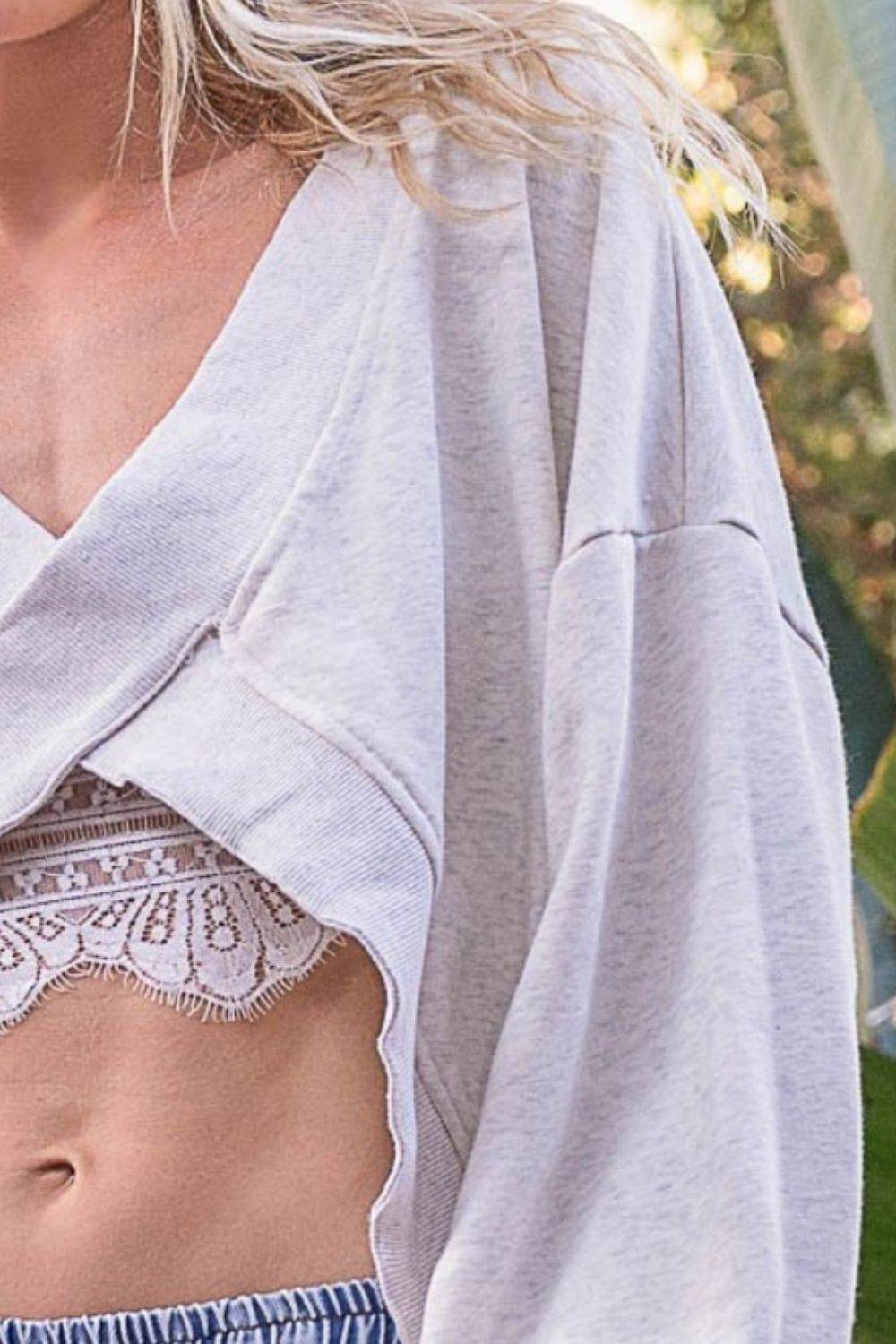 POL V-Cutout Rib Band Long Sleeve Sweatshirt - DaTrendStore.Com POL V-Cutout Rib Band Long Sleeve Sweatshirt - DaTrendStore.Com