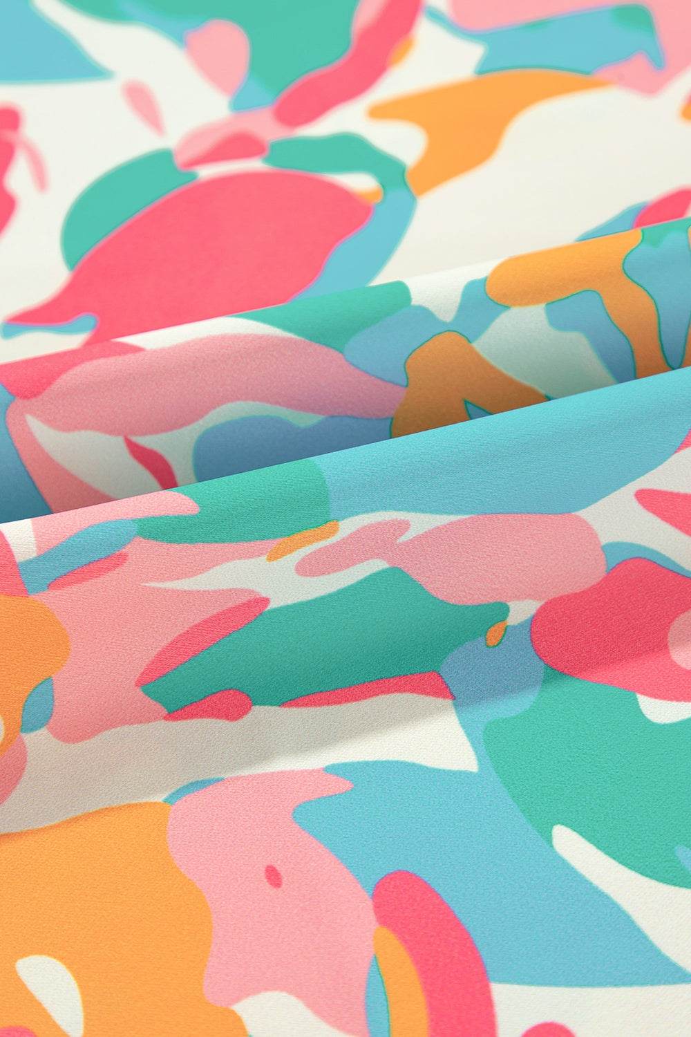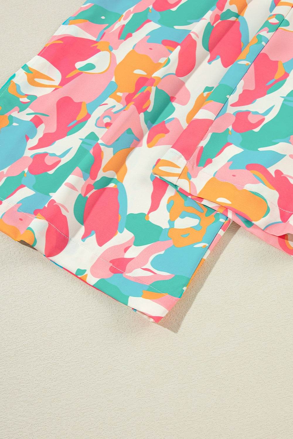 • Printed Notched Cap Sleeve Top and Pants Set Printed Notched Cap Sleeve Top and Pants Set