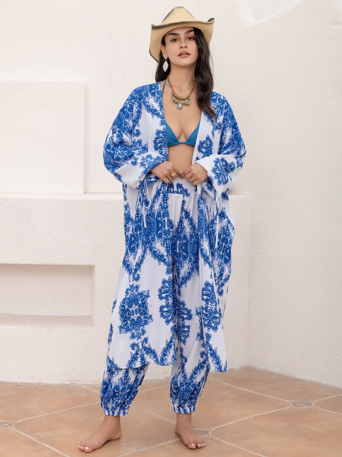 • Printed Open Front Top and Pants Set Printed Open Front Top and Pants Set