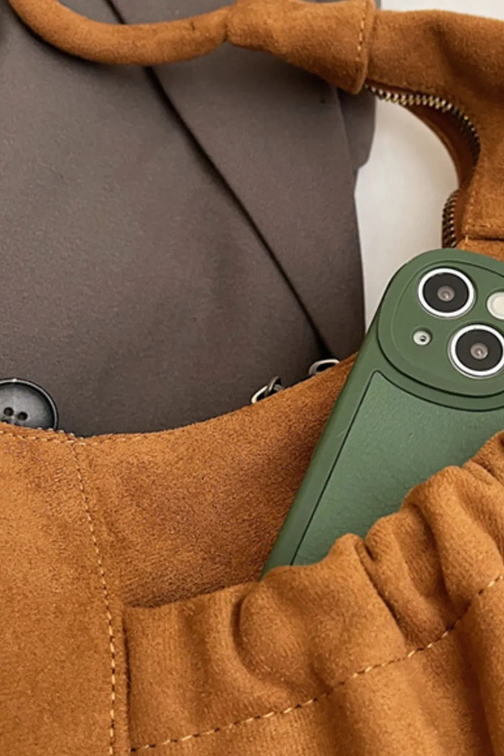 • Ruched Suede Handbag with Zipper Ruched Suede Handbag with Zipper
