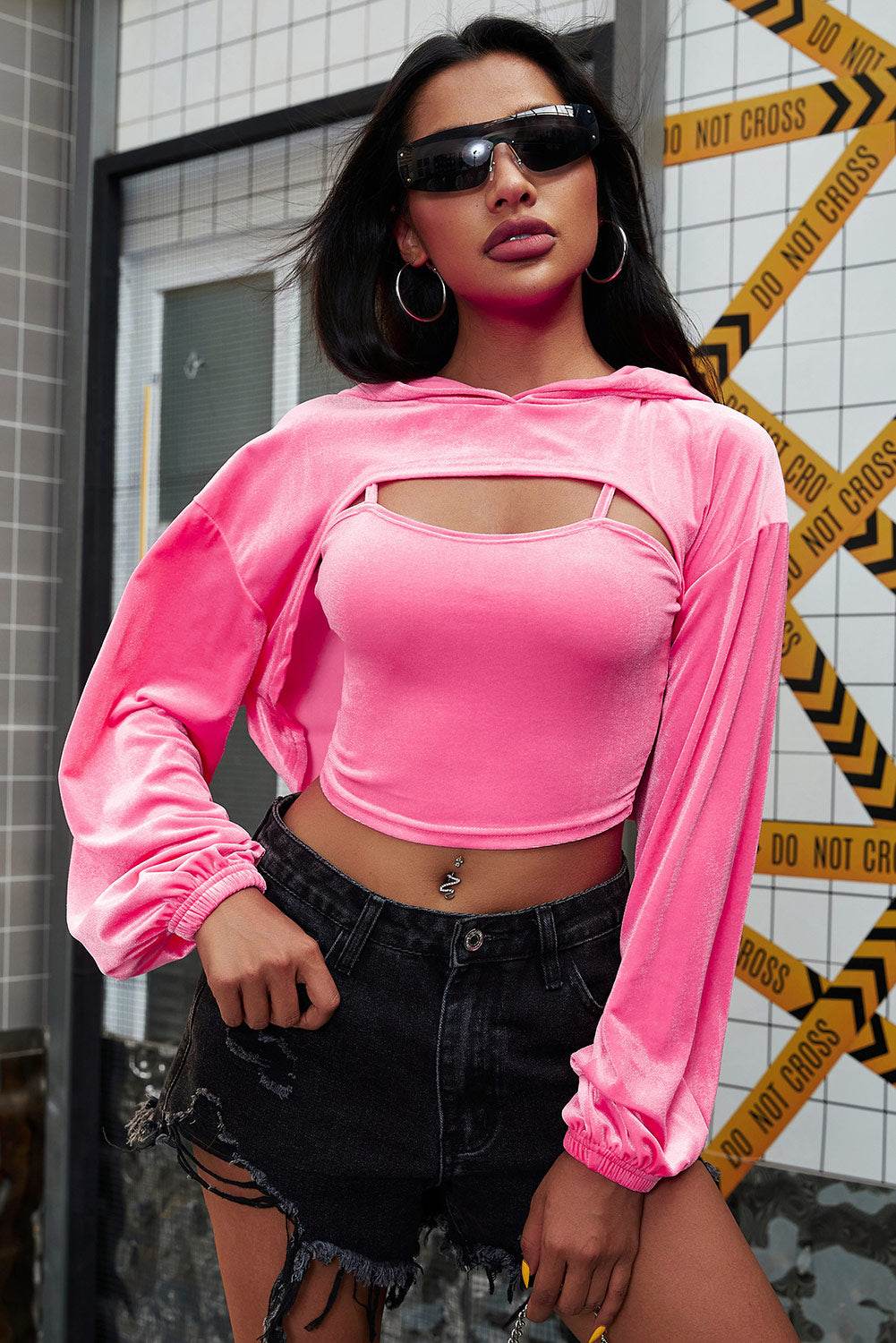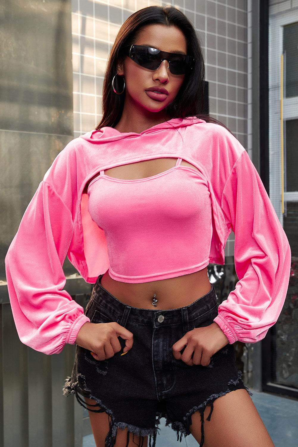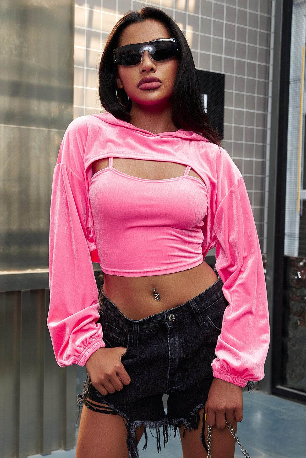 Spaghetti Strap Cami and Dropped Shoulder Hoodie