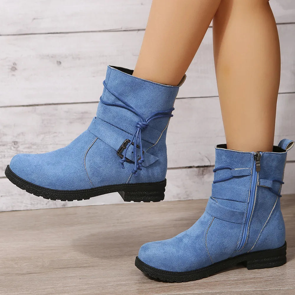 Suede Side Zip Round Toe Boots