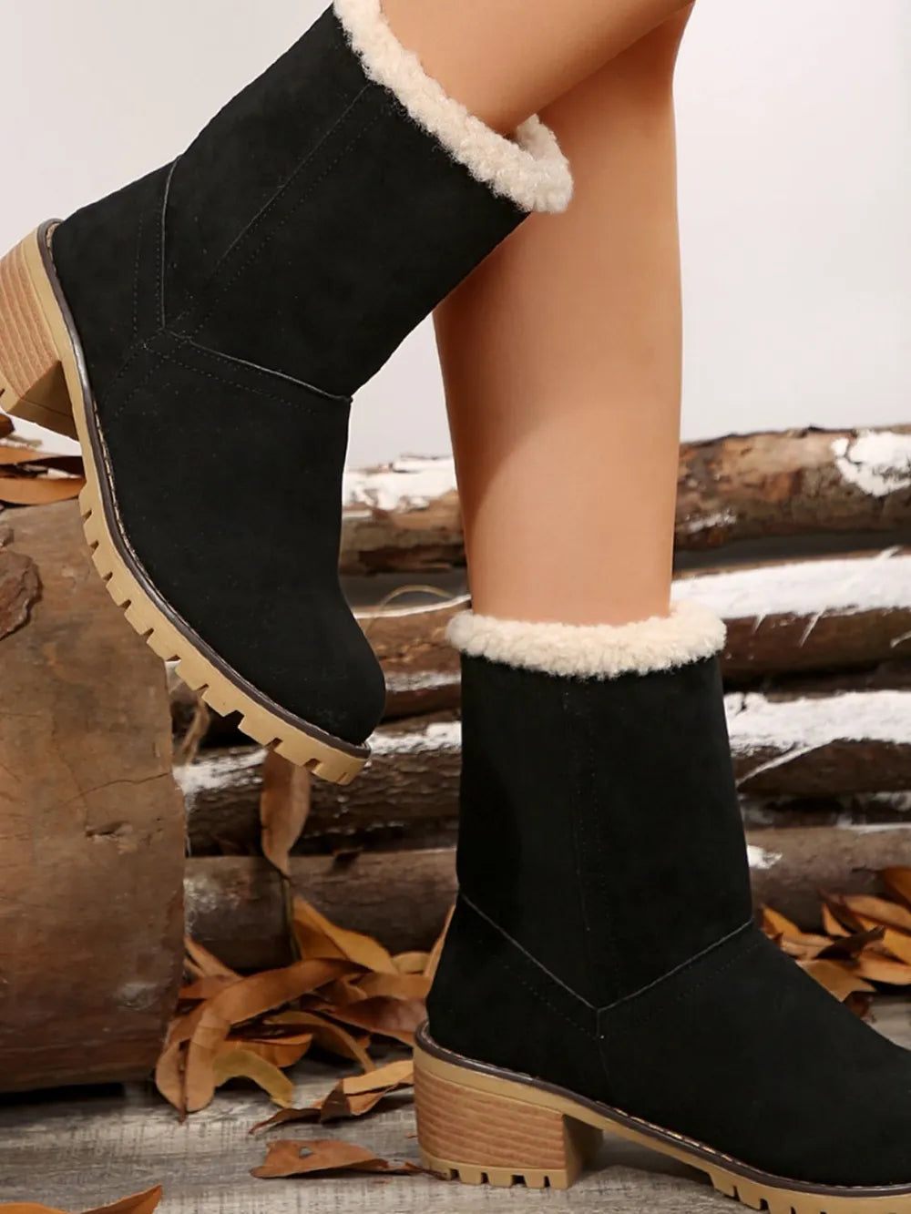 • Thermal Fuzzy Block Heel Boots Thermal Fuzzy Block Heel Boots
