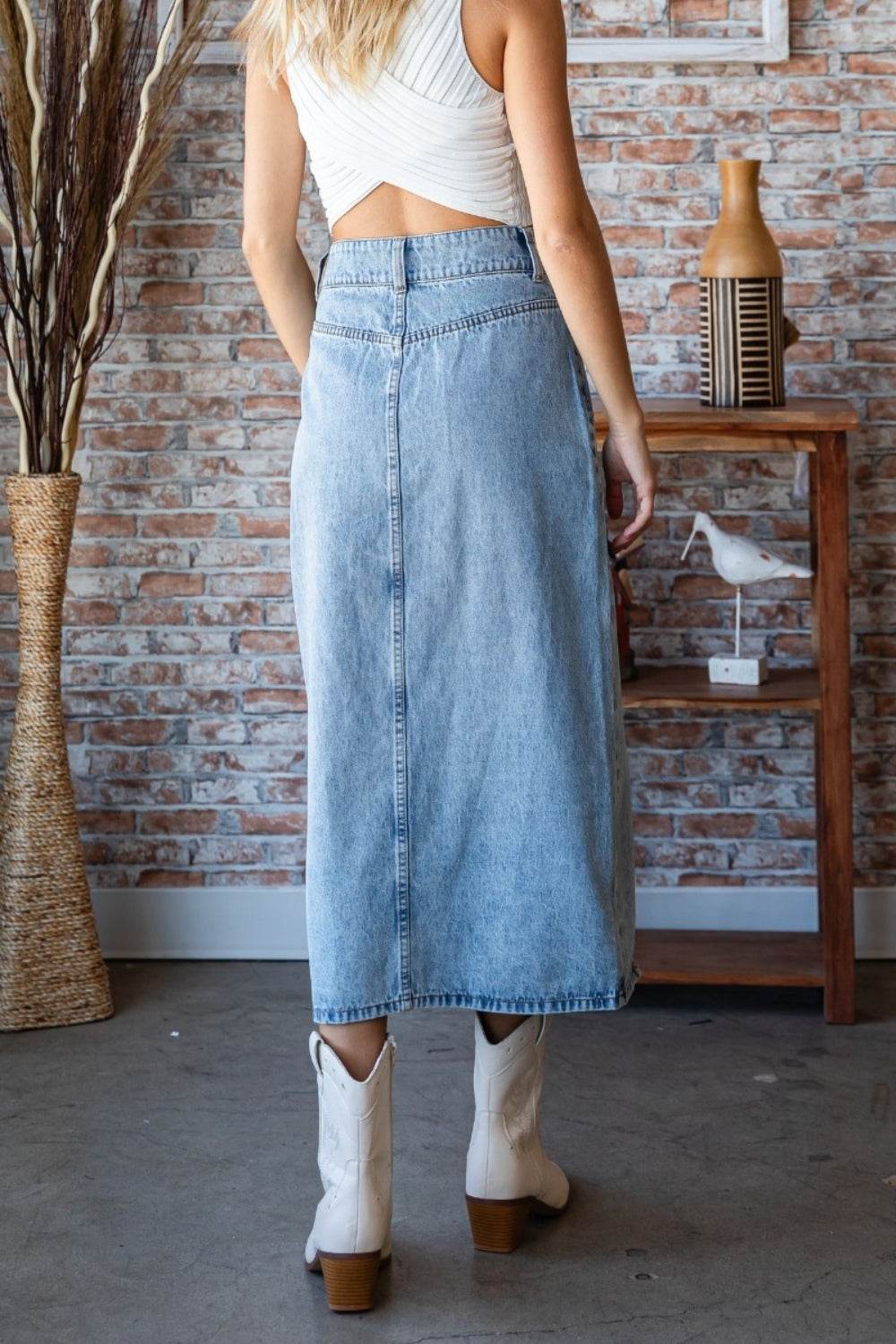 Veveret Slit Mid Rise Waist Denim Skirt - DaTrendStore.Com Veveret Slit Mid Rise Waist Denim Skirt - DaTrendStore.Com