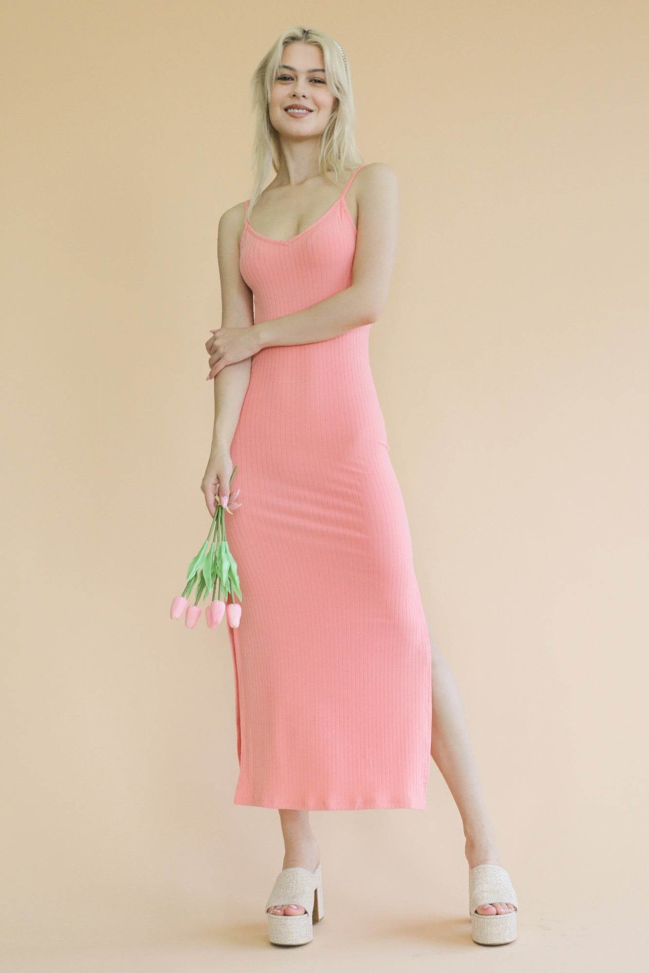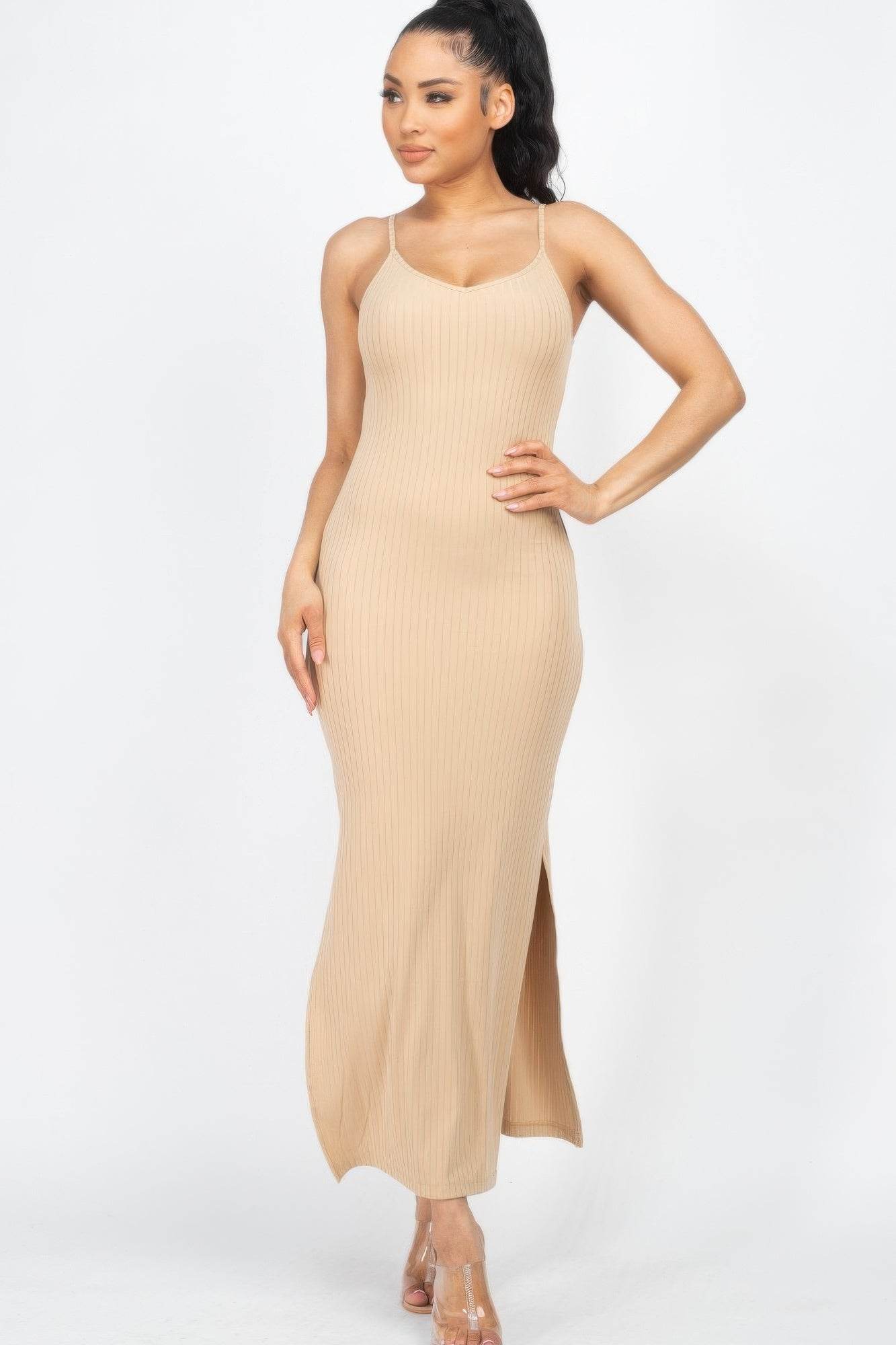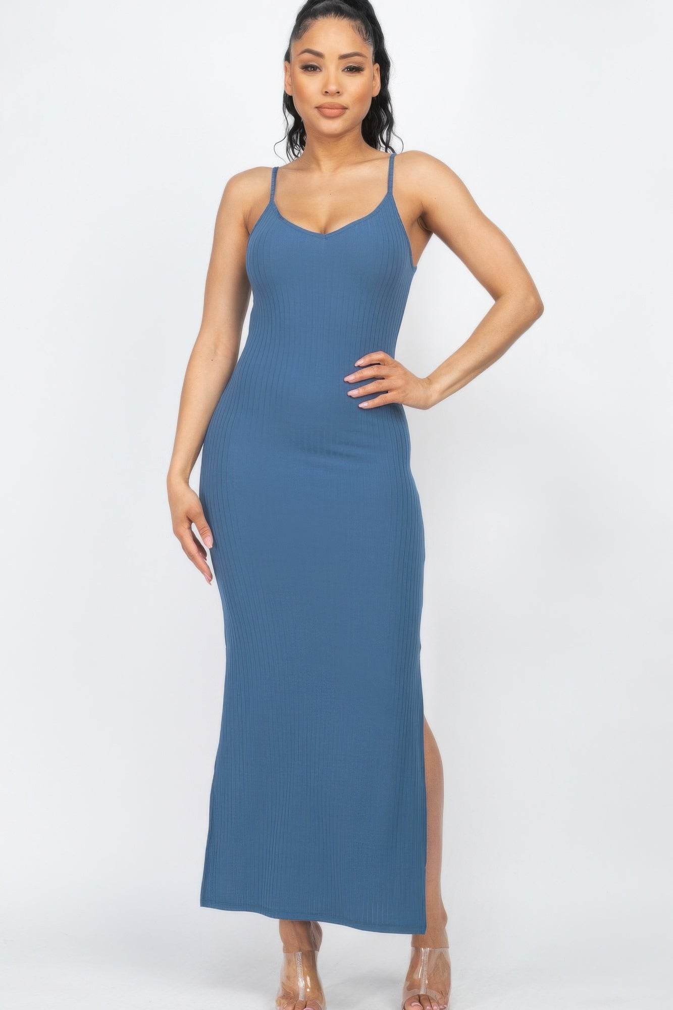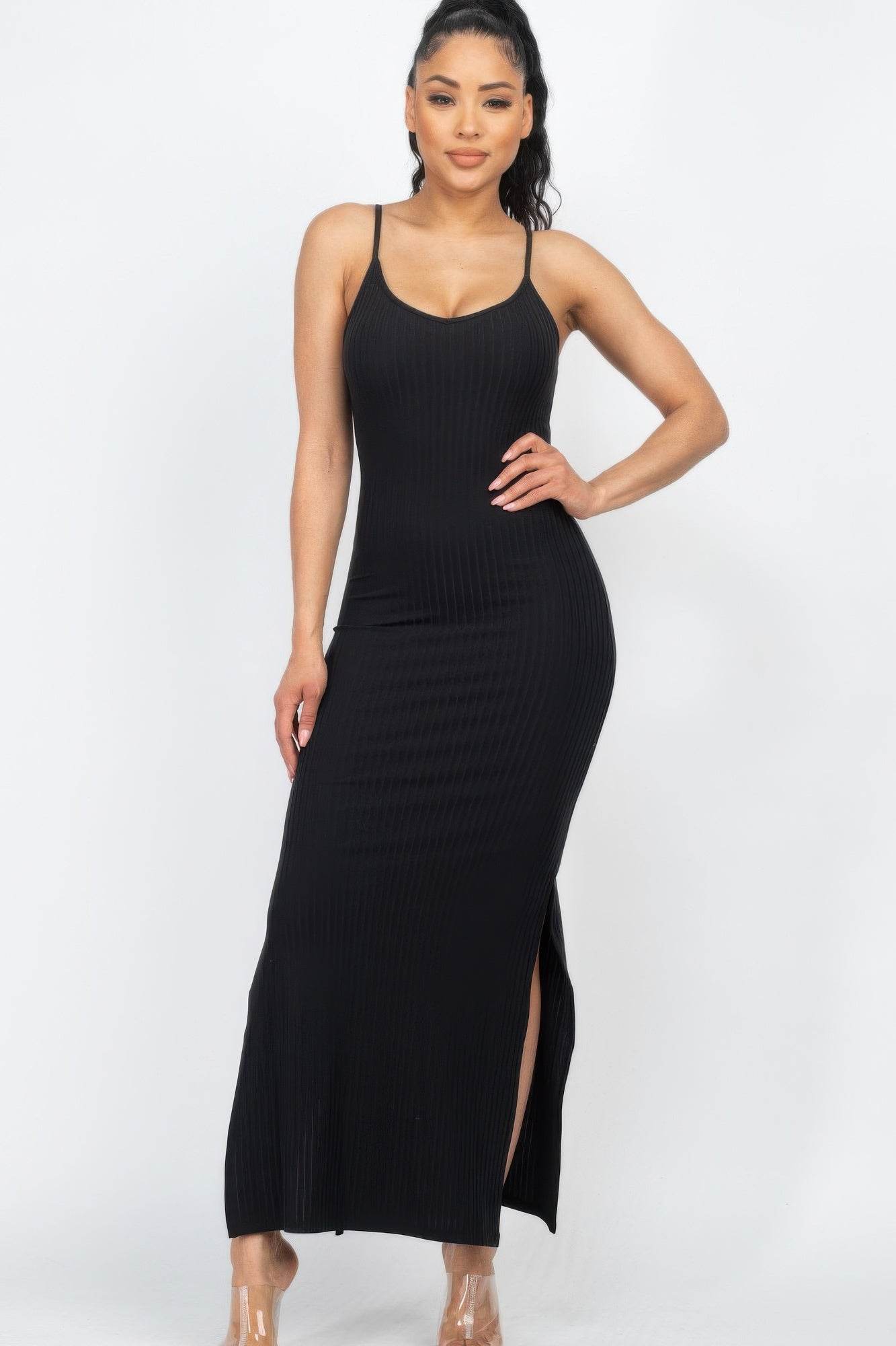 Step into comfort and style with our Ribbed Side Slit Long Cami Dress, a perfect addition to any wardrobe. Crafted from soft, lightweight, and high-stretch rib knit fabric, this dress offers a flattering fit that moves with you, making it ideal for both casual and more polished looks.