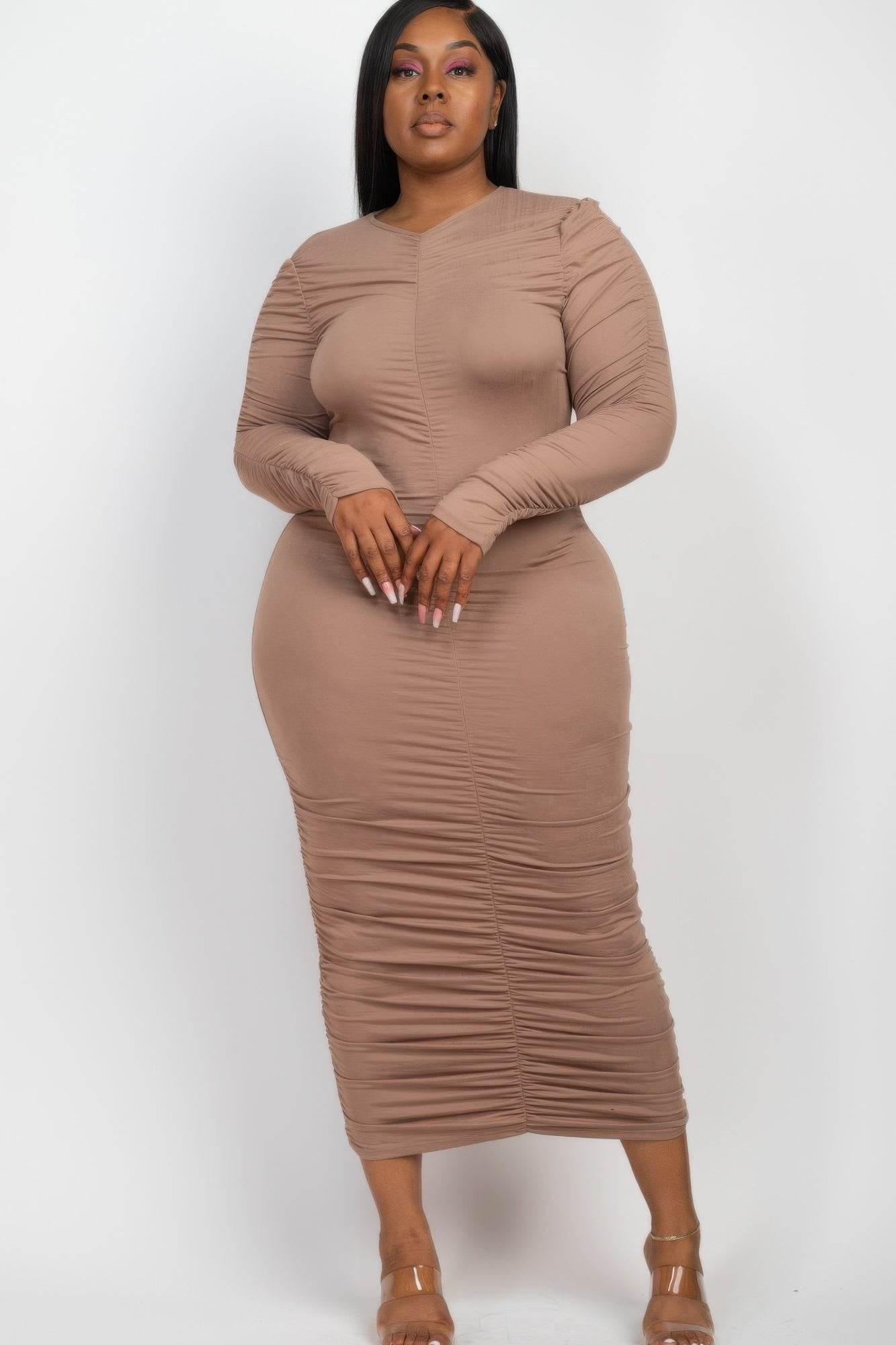 Why Choose Plus Size Ruched Long Sleeve Midi Dress