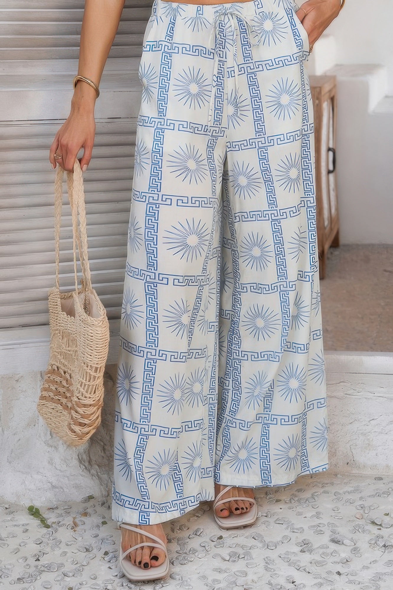 Experience comfort and style with these allover print drawstring pockets wide leg pants, perfect for adding a relaxed yet fashionable touch to your wardrobe. Made from a soft, breathable blend of 30% lyocell and 70% viscose, these pants offer a lightweight feel and smooth drape. The vibrant allover print adds a lively, eye-catching element, while the adjustable drawstring waist ensures a customizable, comfortable fit. Featuring practical pockets and a wide leg cut, these pants are ideal for casual outings, vacations, or everyday wear.