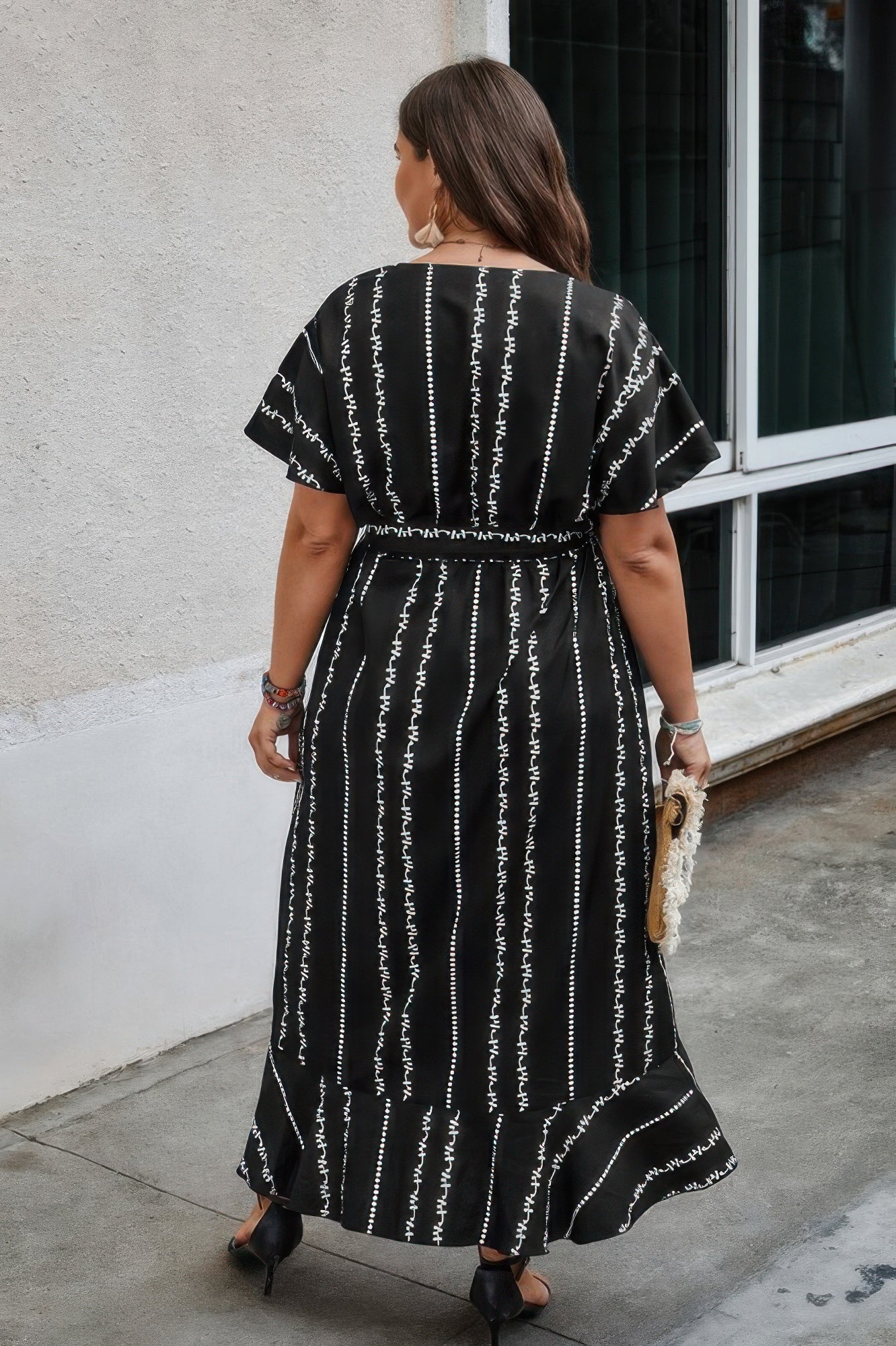 - Plus Deep V Belt Asymmetric Hem Fit Dress for added style and flair