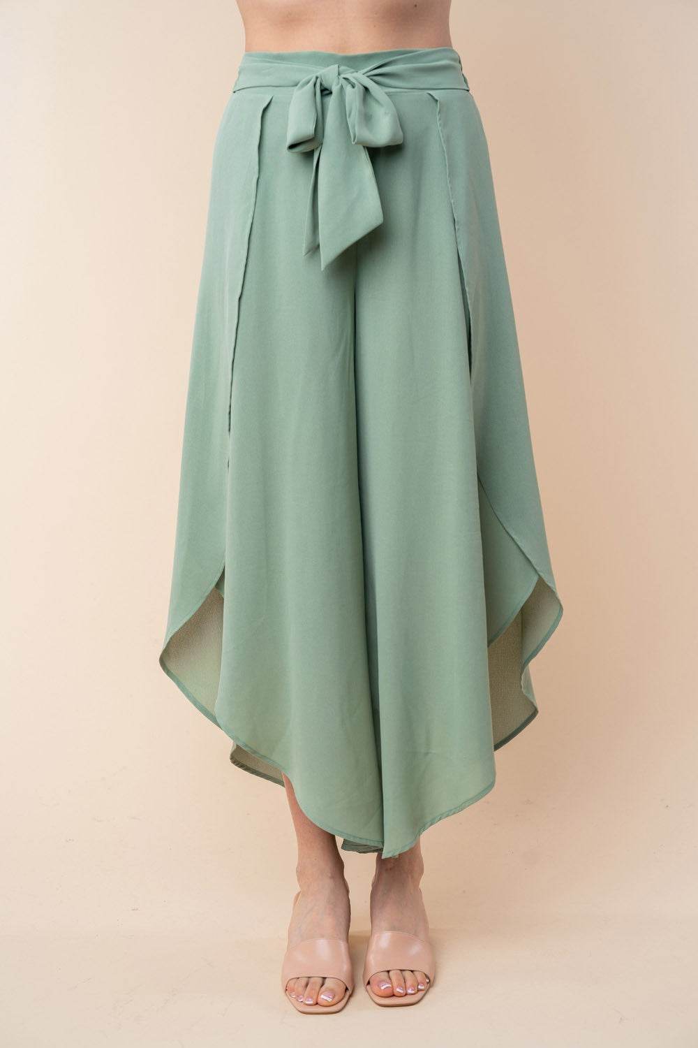 These high-waisted solid woven pants are a versatile and stylish choice for any wardrobe. The elastic waist ensures a comfortable fit, while the built-in shorts provide added coverage and flexibility. The wide tulip hem adds a touch of elegance and movement to the design. Crafted from a lightweight woven material, these pants are perfect for staying cool and chic in warmer weather. Whether dressed up with a blouse and heels or dressed down with a casual top and sneakers, these pants are a fashionable and effortless option for any occasion. Elevate your look with these high-waisted woven pants that balance comfort and style flawlessly.