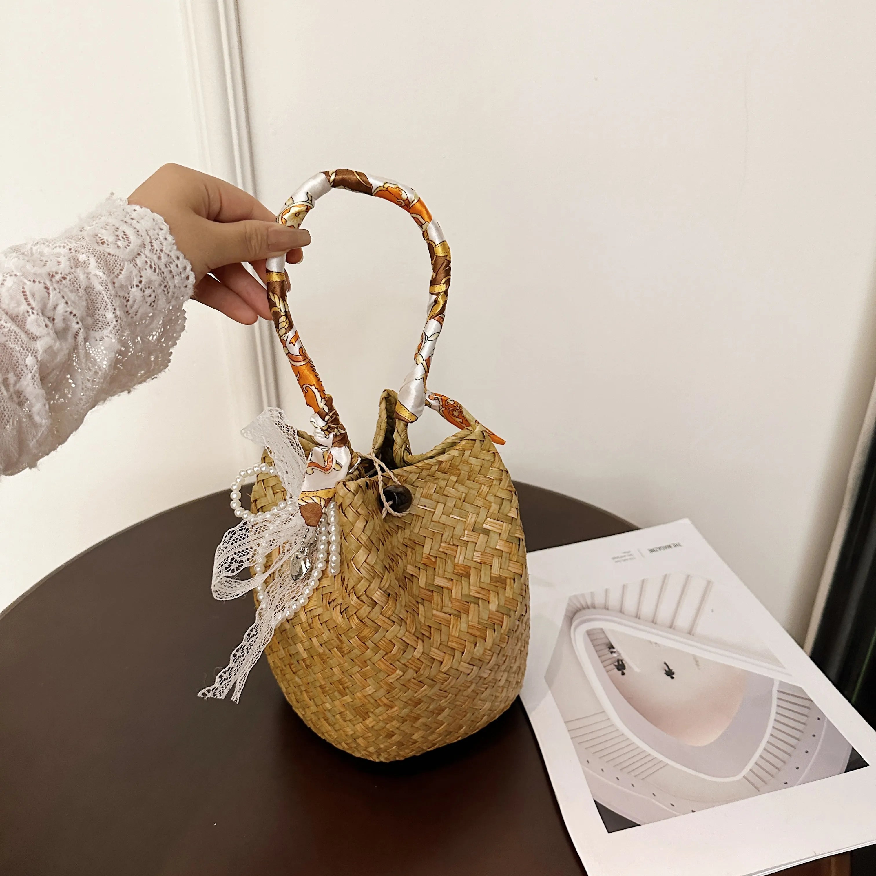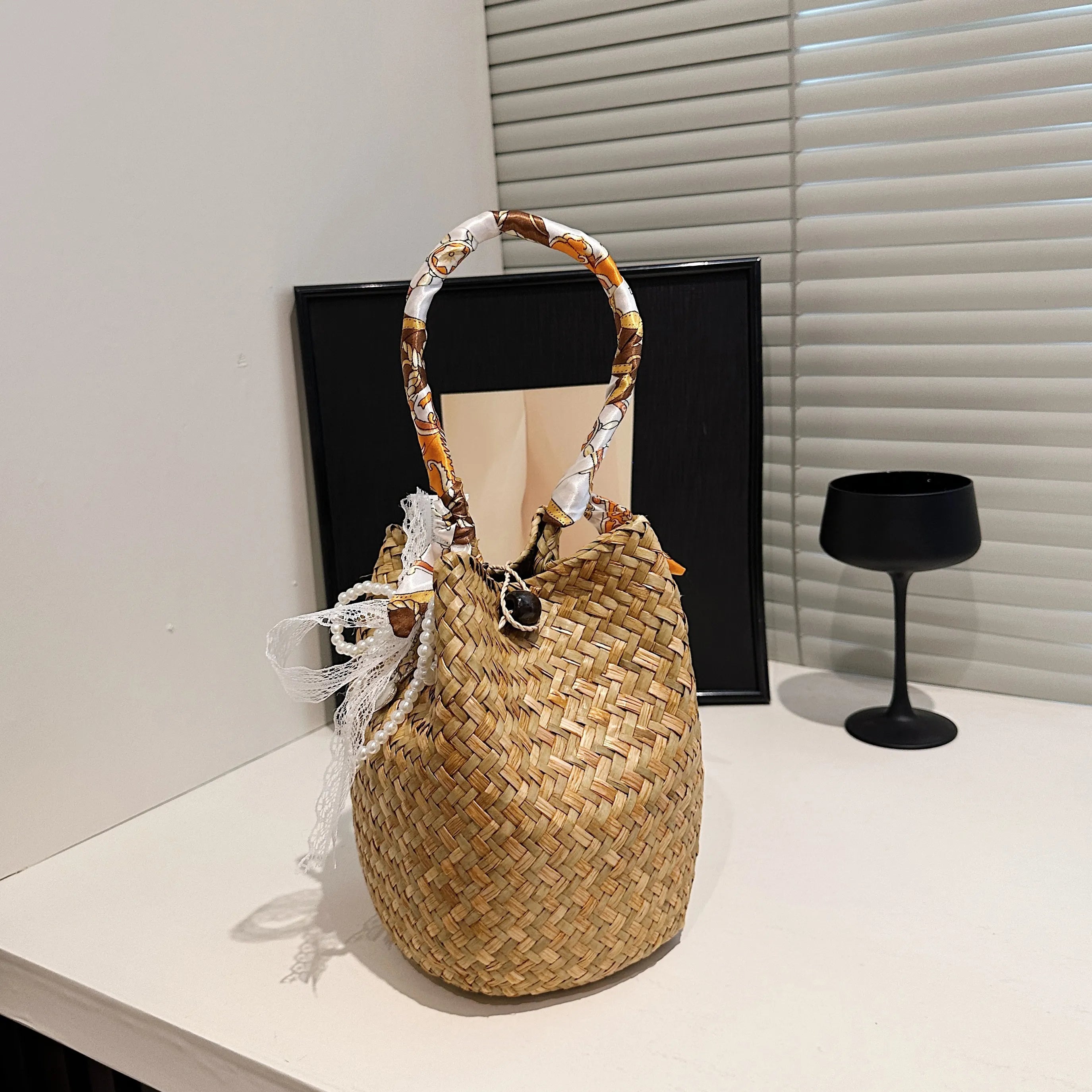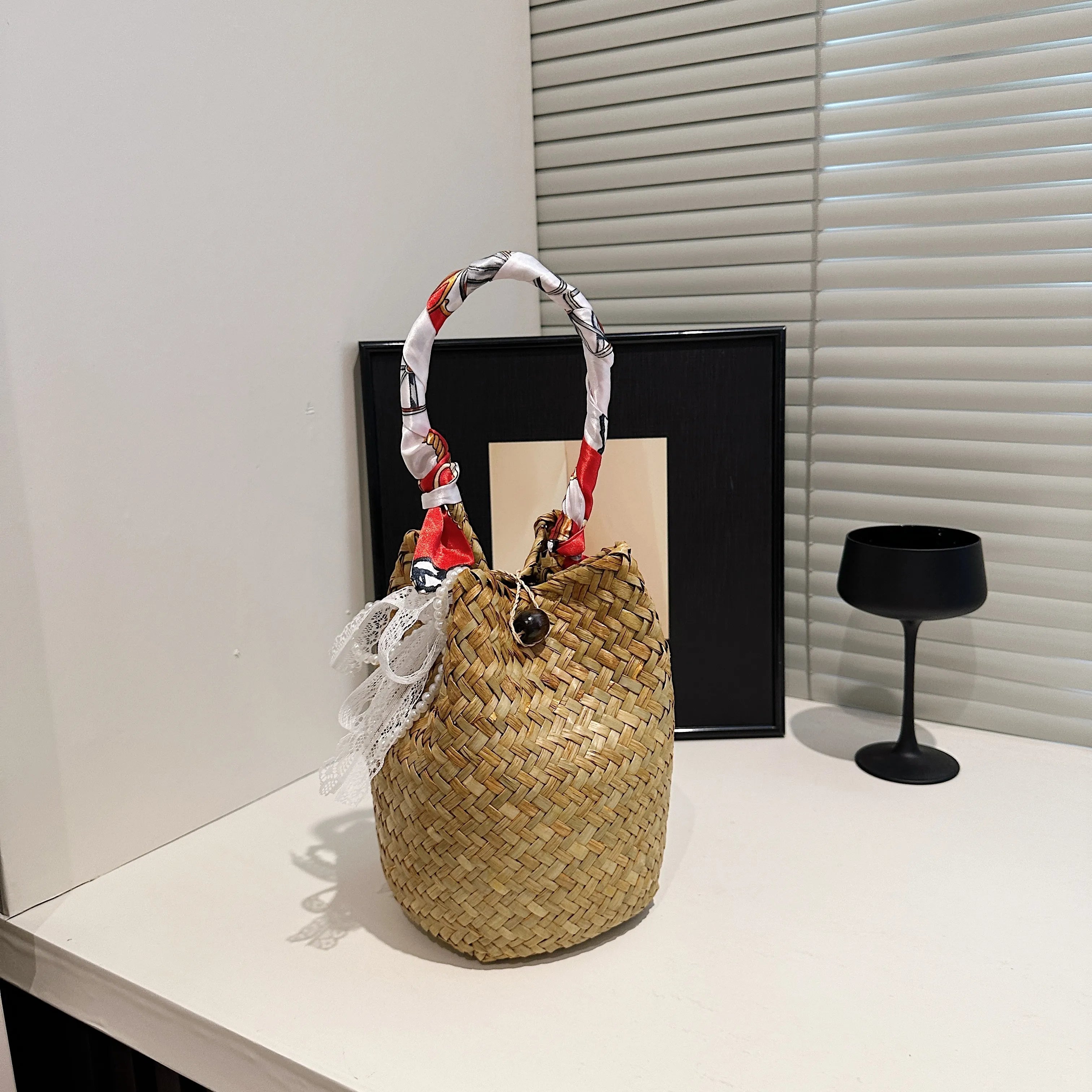 • Woven Straw Basket Handbag Woven Straw Basket Handbag