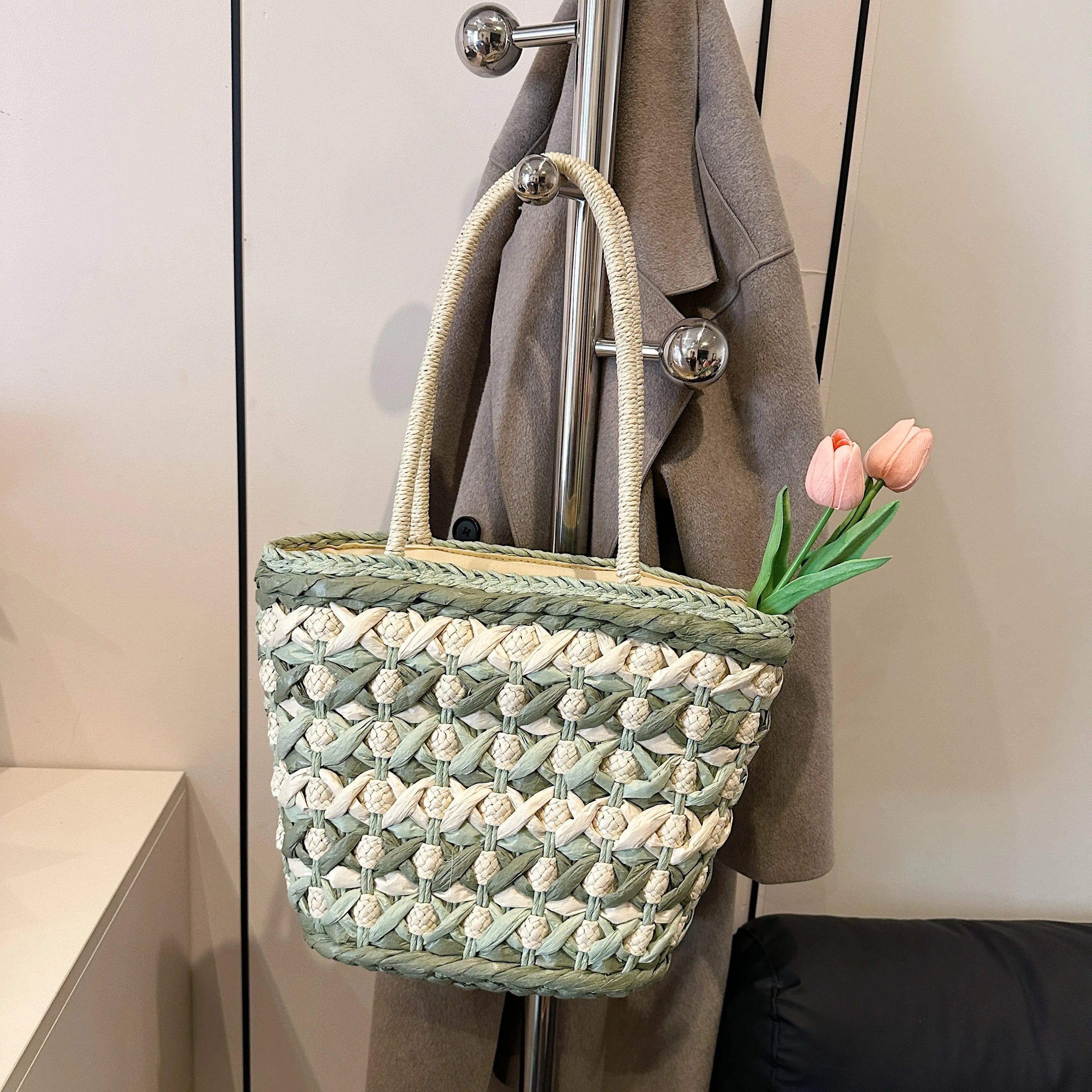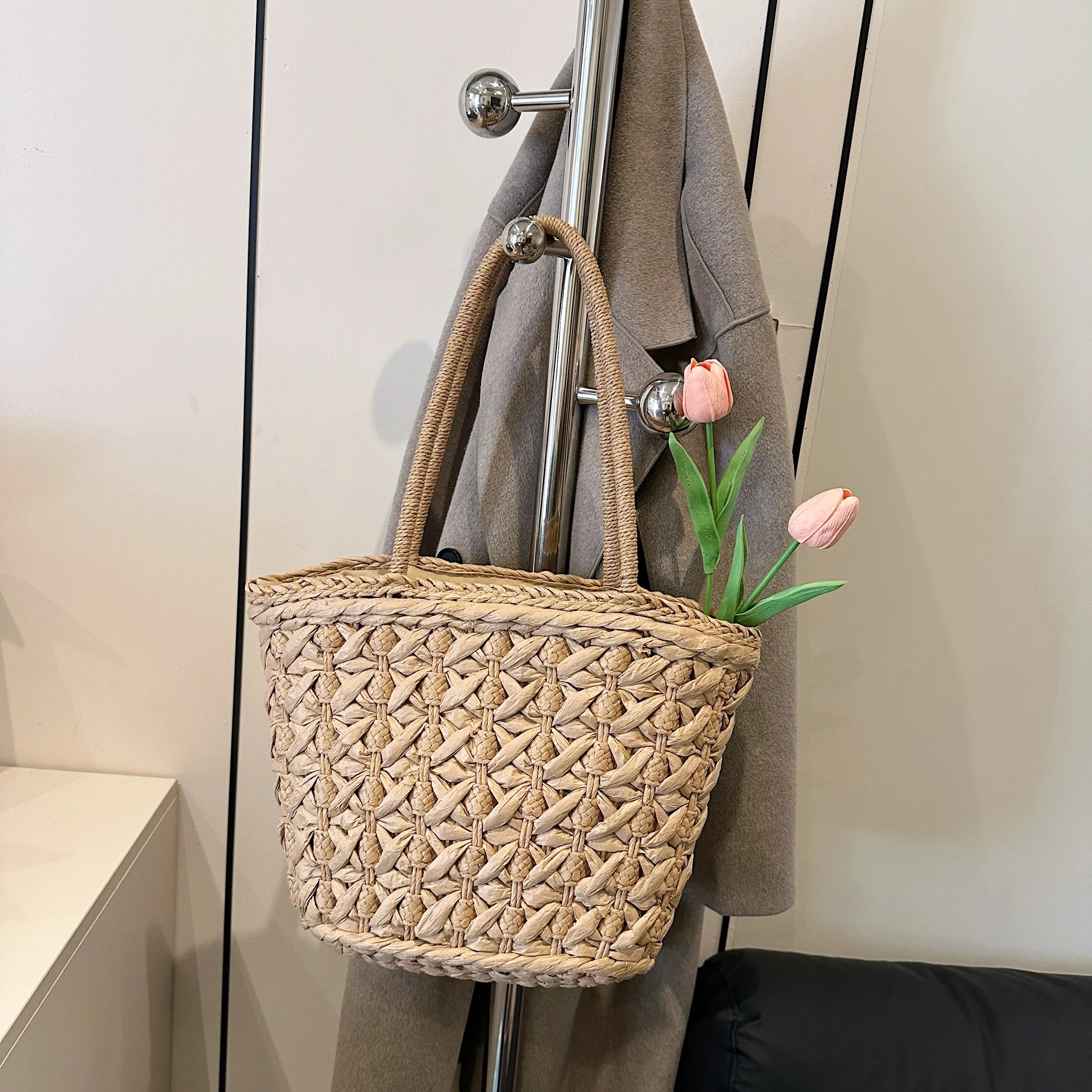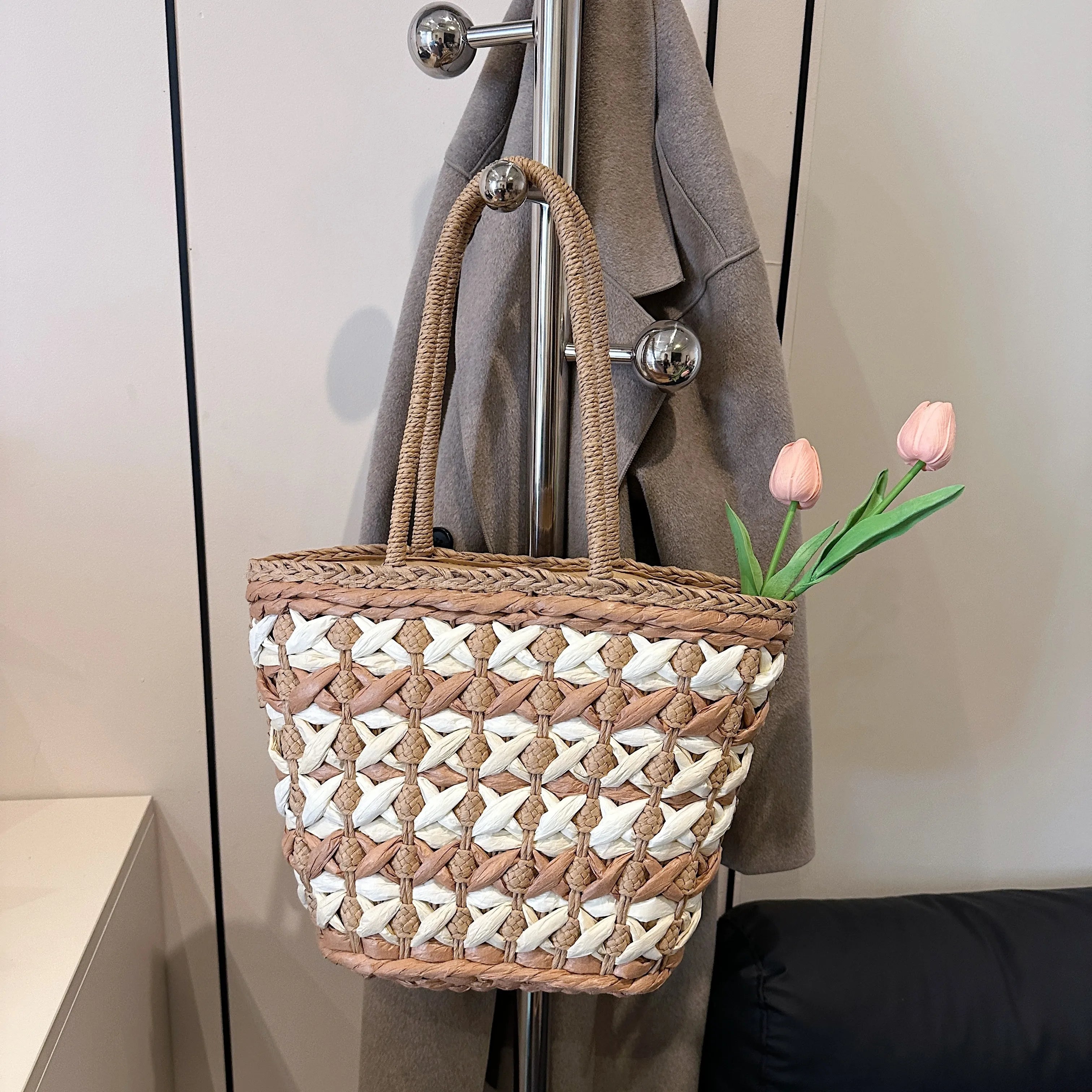 • Woven Straw Tote Bag Woven Straw Tote Bag
