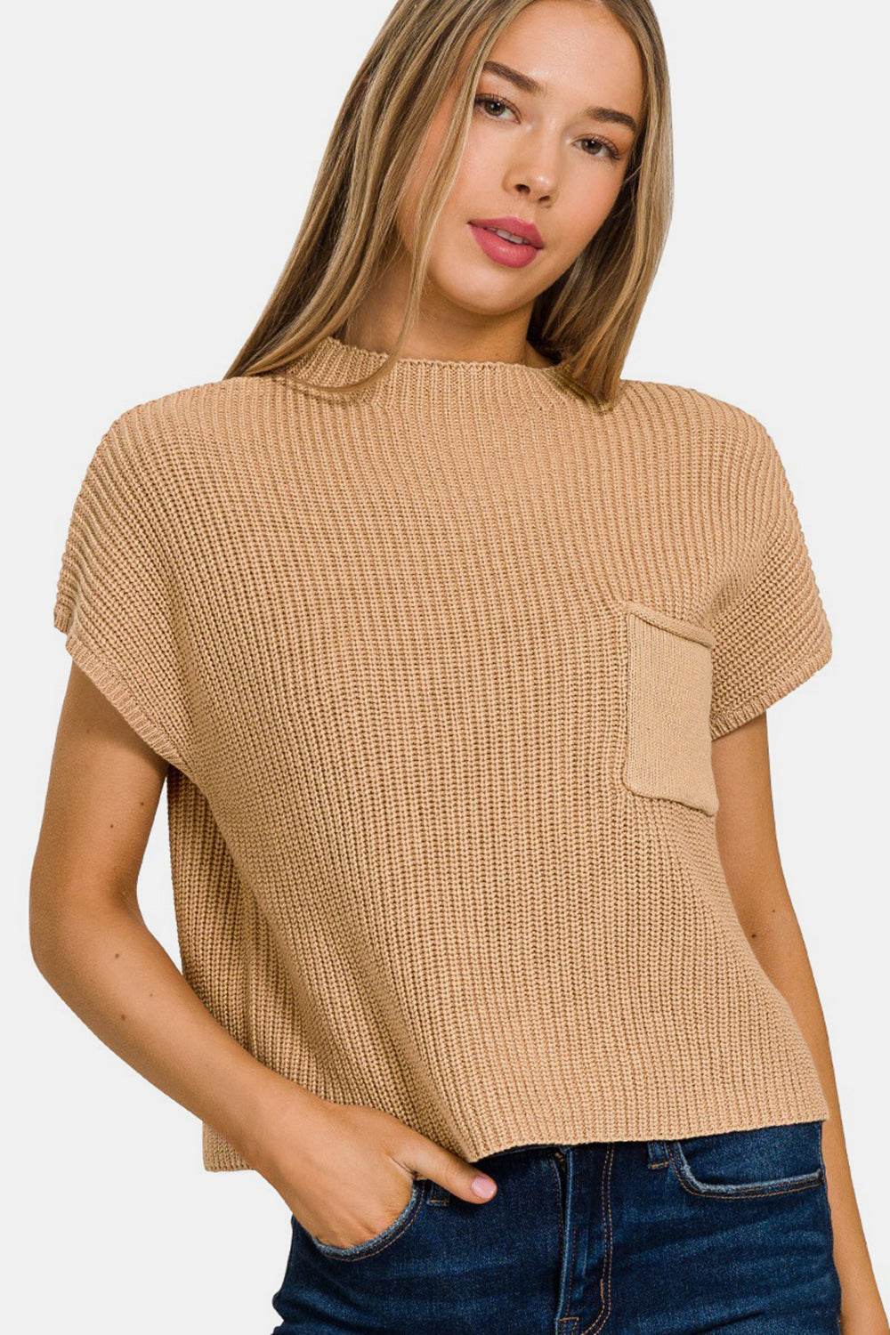 • Zenana Mock Neck Short Sleeve Cropped Sweater Zenana Mock Neck Short Sleeve Cropped Sweater